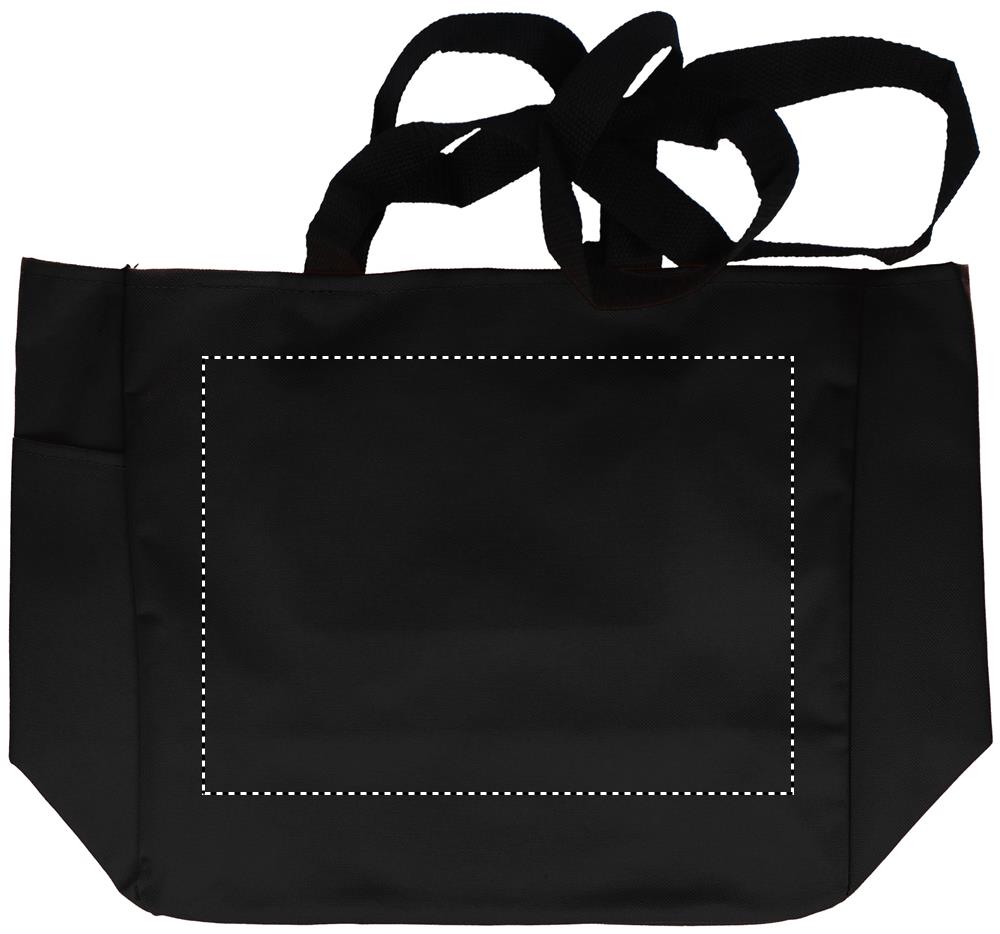 600D polyesterinen ostoskassi, sivutasku ja sisällä vetoketjutasku. Pitkät ja lyhyet kahvat.