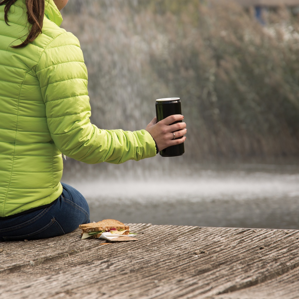 Tölkki (330ml) valmistettu PLA-materiaalista. Valmistusmateriaalin ansiosta tuoteen voi kompostoida elinkaarensa lopussa. Tölkin voi pestä koneessa tai laittaa mikroaaltouuniin. Pakattu lahjapakkaukseen.