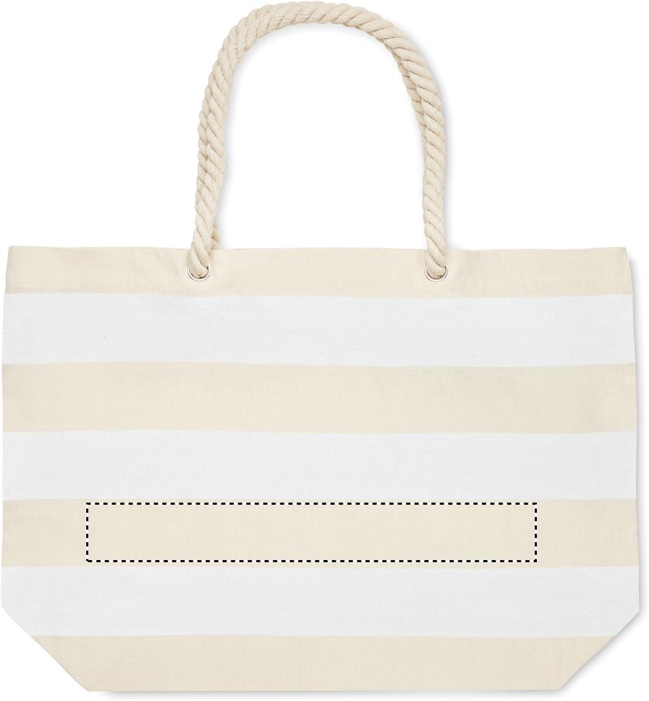 Raidallinen ranta- tai ostoskassi puuvillaa, jossa on narukahva. 220 gr/m².