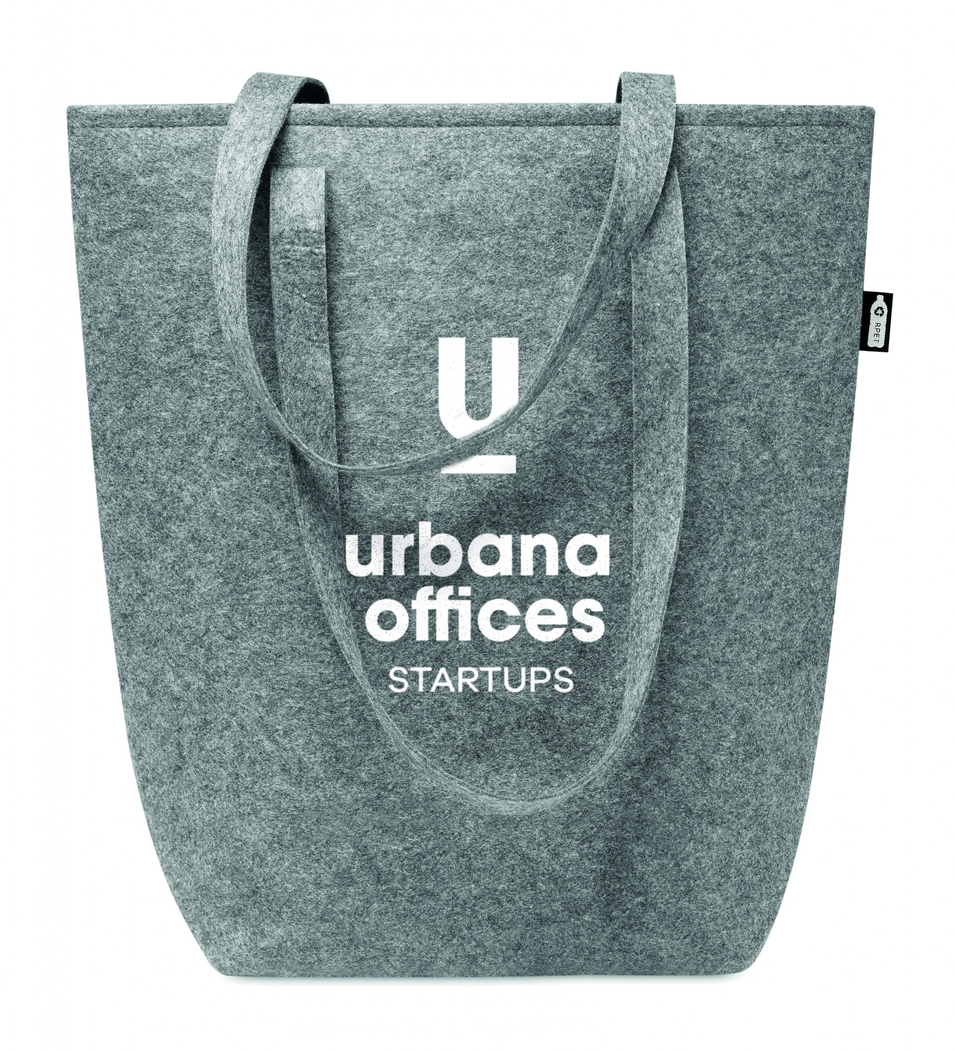 RPET huopakassi, pitkillä kahvoilla ja pohjalevikkeellä. Huovan paksuus: 2 mm.