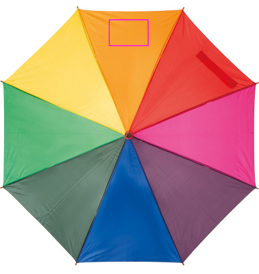 Viehättävä monivärinen automaattinen sateenvarjo kaareva puinen kahva. Painamme logosi segmenttiin.