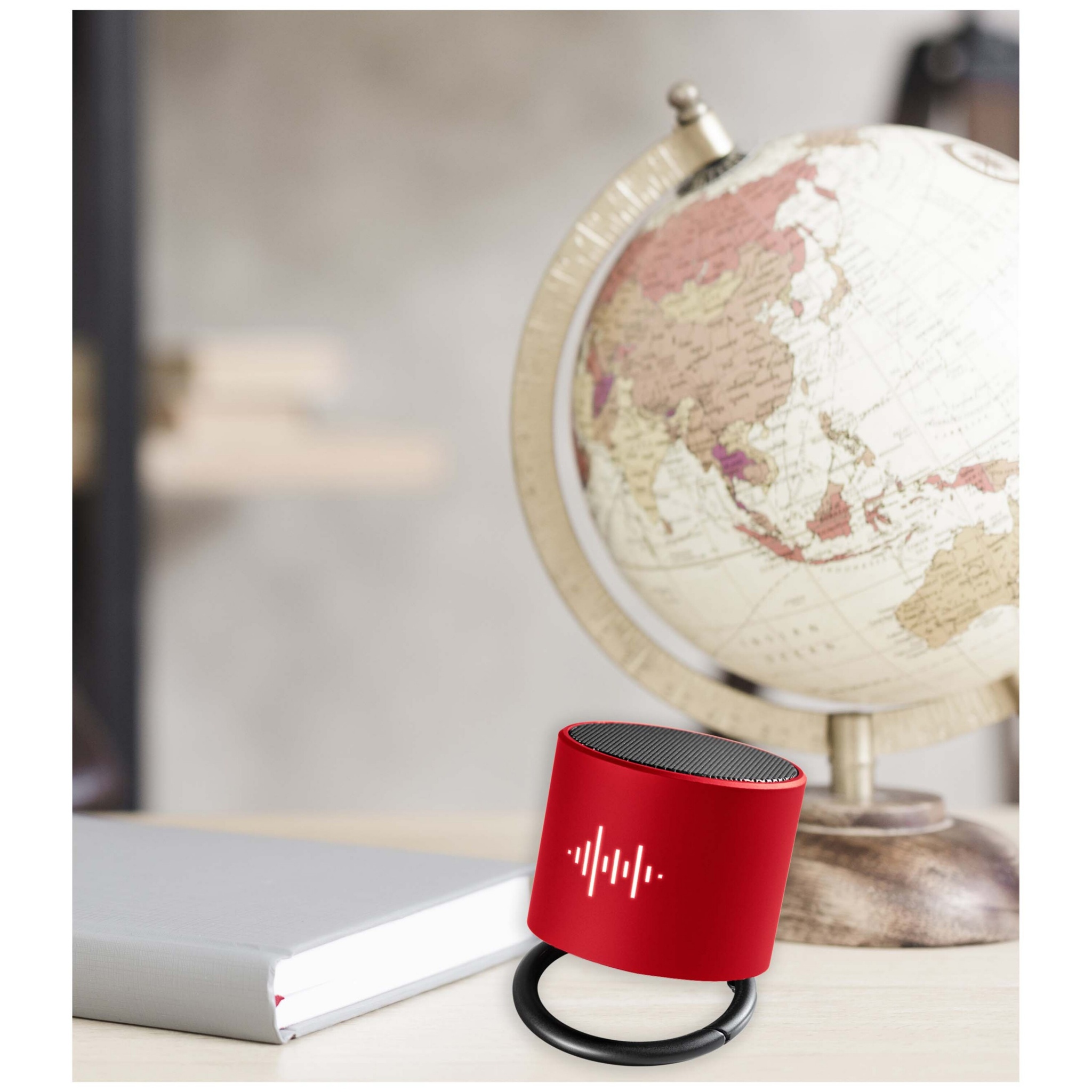 Langaton 3 W:n Bluetooth®-kaiutin valaistuvalla logolla ja antibakteerisella viimeistelyllä. Kahden äänilähdön ansiosta äänenlaatu on verraton tämän kokoiseksi kaiuttimeksi. Rengaskaiutinta kallistamalla äänen voi suunnata haluttuun suuntaan. Sisäänrakennettu mikrofoni and neuvottelupuhelutoiminto. Kapasiteetti: 500 mAh – 3,7 V akku. Taajuus: 50 Hz – 20 KHz. Äänilähtö: 1 x 3 W. Impedanssi: 4 Ω. Bluetooth® 4.2. Nettopaino: 100 grammaa. Koko: ∅ 50 mm x 45 mm. Toimitetaan lahjapaketissa, jossa on magneettinen sulkemismekanismi ja joka on valmistettu kierrätetystä paperista.