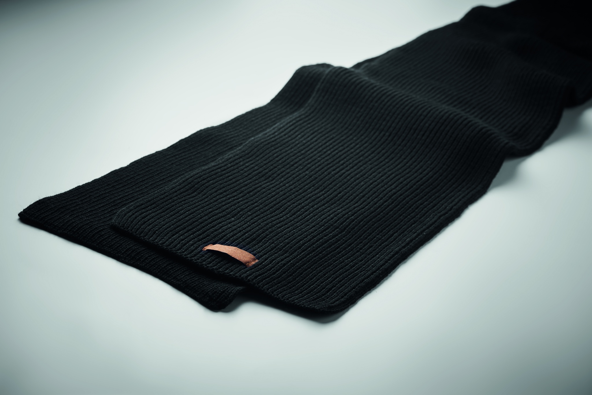 3-osainen talvisetti, sisältää RPET-pipon, huivin ja kosketusnäyttö hanskat. Tuotteessa etiketti painatusaluetta varten.