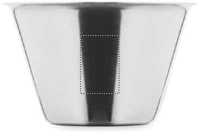 Ruostumattomasta teräksestä valmistettu taskumatti, jossa PU-nahkapinta ja kaksi ruostumattomasta teräksestä valmistettua 20 ml:n shottimukia kannessa. Tilavuus: 230 ml.