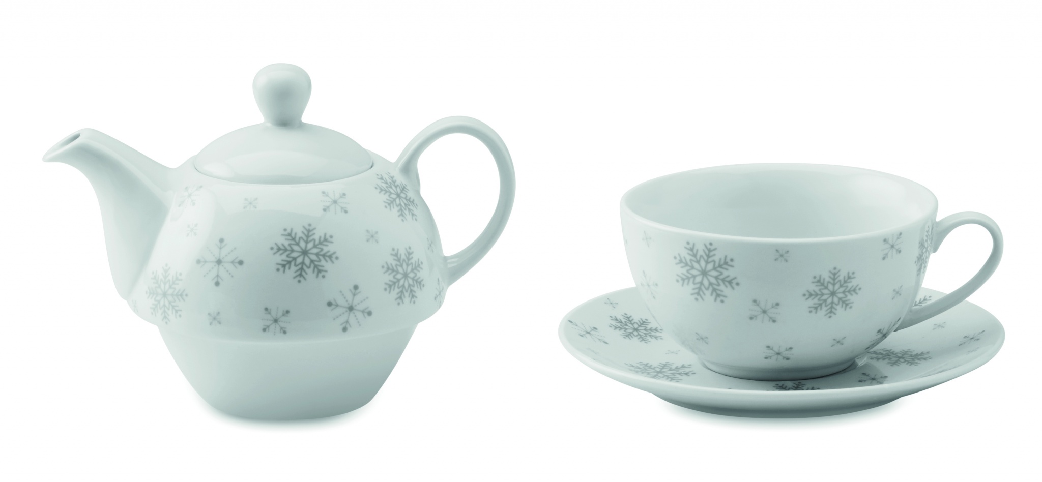 Jouluinen teesetti, sisältää jouluisen 260 ml teekupin ja 400 ml -kannun. Pakattuna kartonkiseen lahjapakkaukseen.