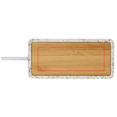 USB 2.0 -hubi, joka on valmistettu luonnonvärisestä mosaiikista ja bambusta. Sisältää 1:n Type-C-ulostulon ja 3 USB-A-ulostuloa. Toimitetaan lahjapakkauksessa, joka sisältää käyttöohjeet (molemmat kestävistä materiaaleista).