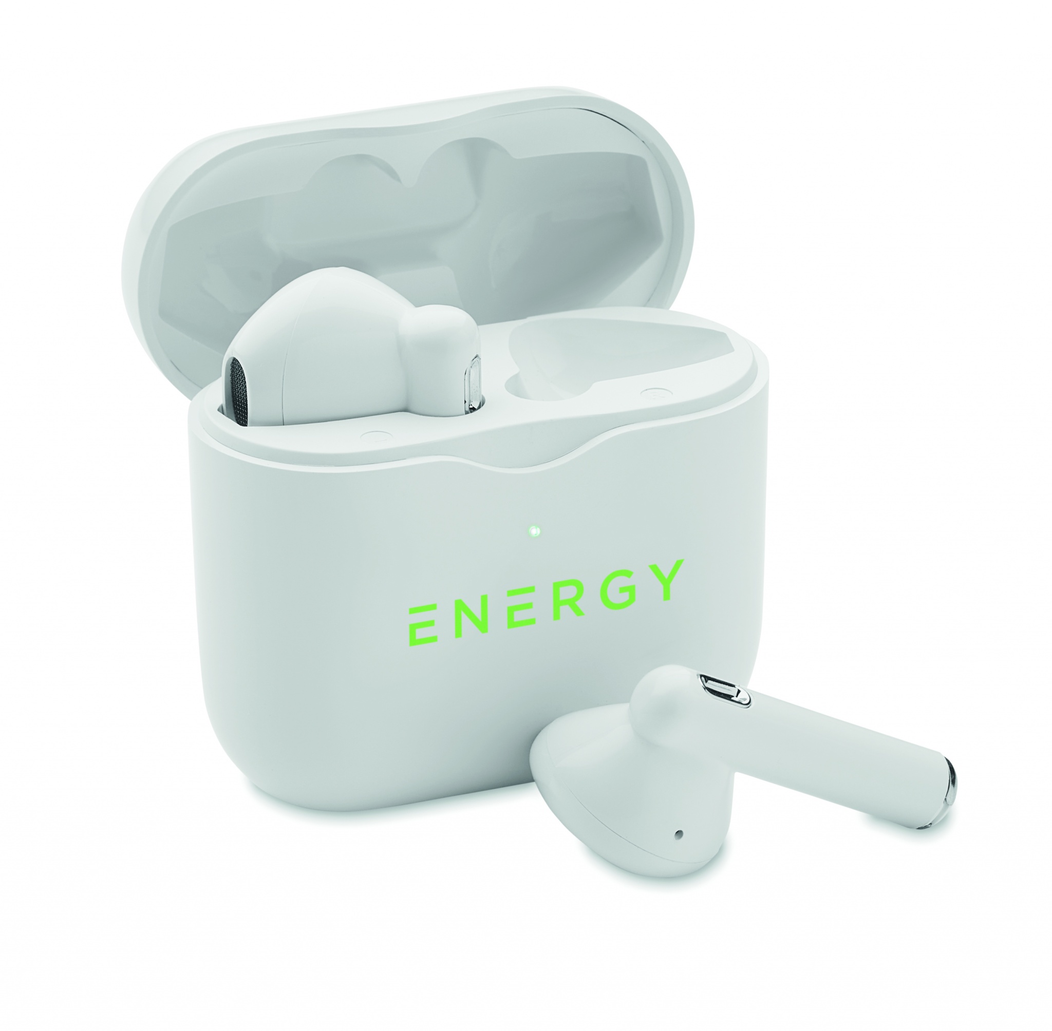 Logo trade mainostuote kuva: TWS-kuulokkeet latausalustalla