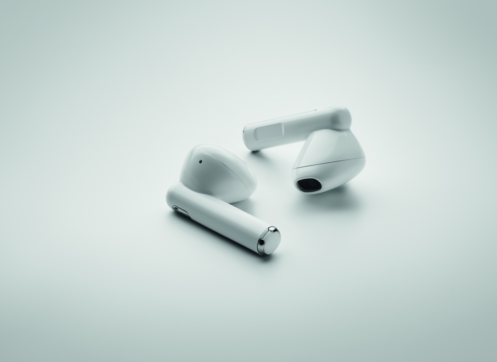 ABS True Wireless Stereo (TWS) 5.3 langattomat stereokuulokkeet mikrofonilla ja 30 mAh:n sisäänrakennetulla ioniparistolla sekä 200 mAh:n latausrasialla. Toistoaika n. 4 tuntia. Automaattinen pariliitos.