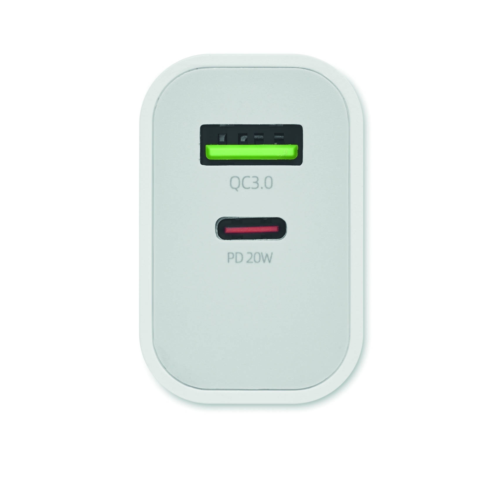 2-porttinen USB laturi EU pistokkeella. Tyypin A ja C liitännät. Tukee Quick Charge 3.0/Power Delivery -tekniikkaa.