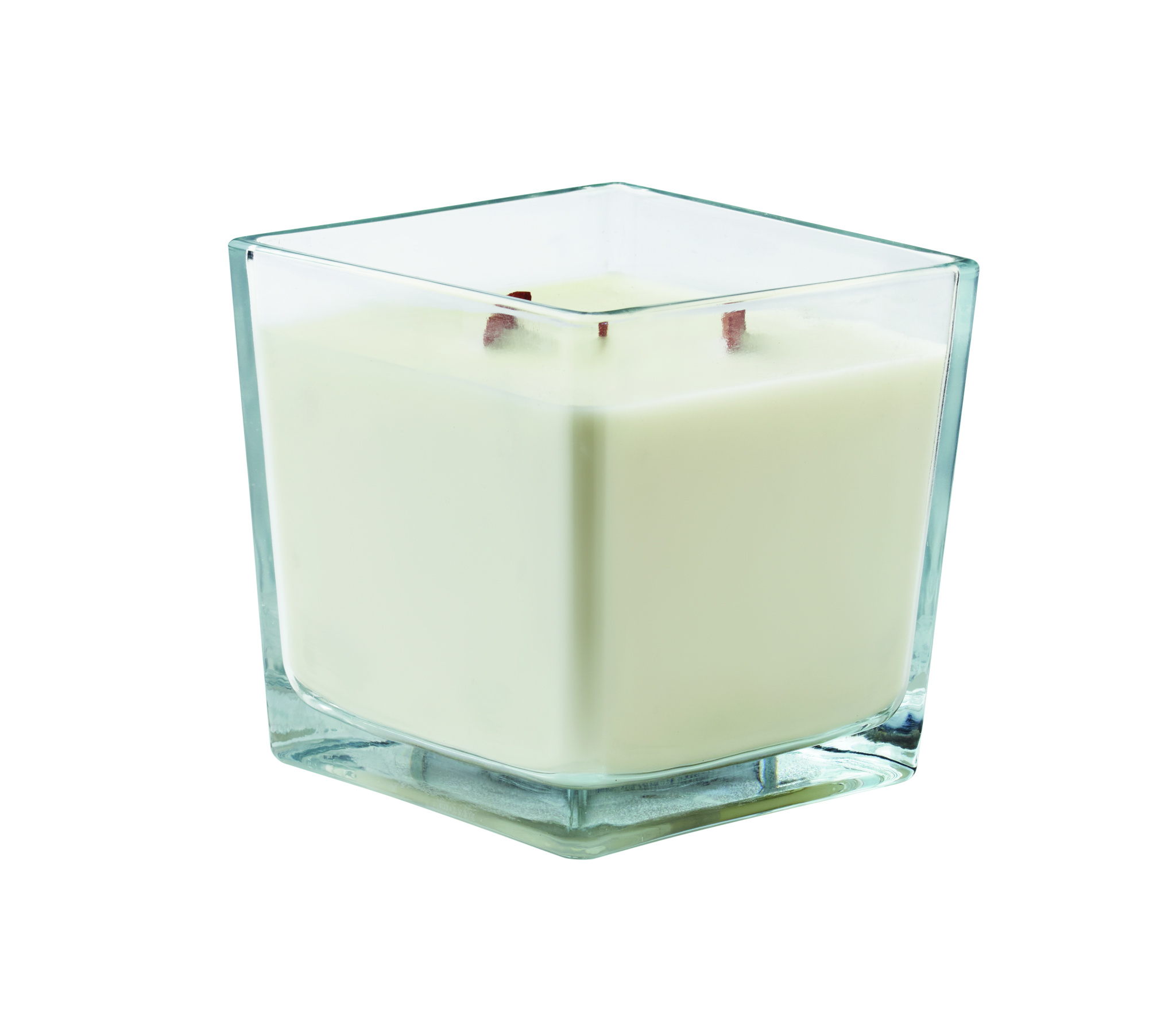 Erittäin suuri vaniljan tuoksuinen kasvipohjainen vahakynttilä, 1300 g, lasissa, jossa on kaksi puista sydäntä ja mehiläispesäkuvio. Paloaika 70 tuntia.