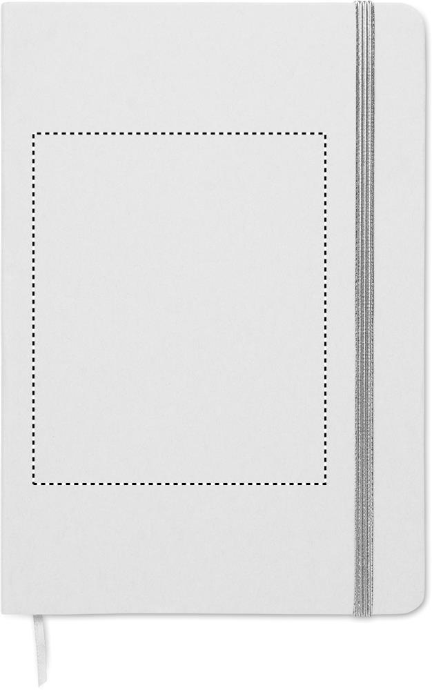 A5-kokoinen muistikirja kovalla kierrätetyllä kartongilla. Valkoinen kansi. Casebound. 160 rivillistä kierrätyspaperisivua (80 arkkia). Joustava sulkuhihna, kirjanmerkki nauha, joka sopii yhteen paljastetun värin kanssa. Laserkaiverruksen jälkeen väri paljastuu.