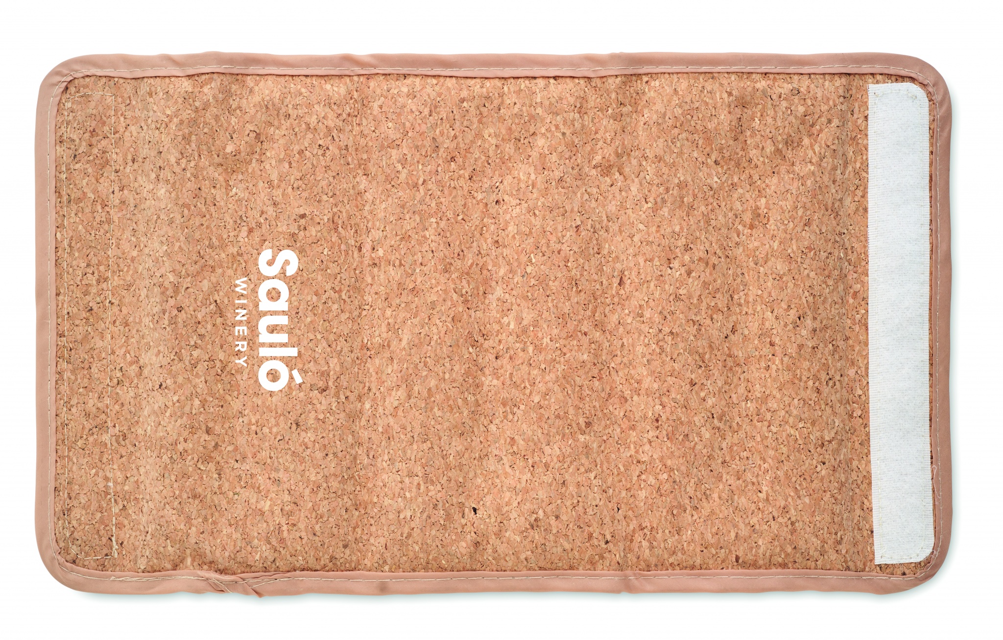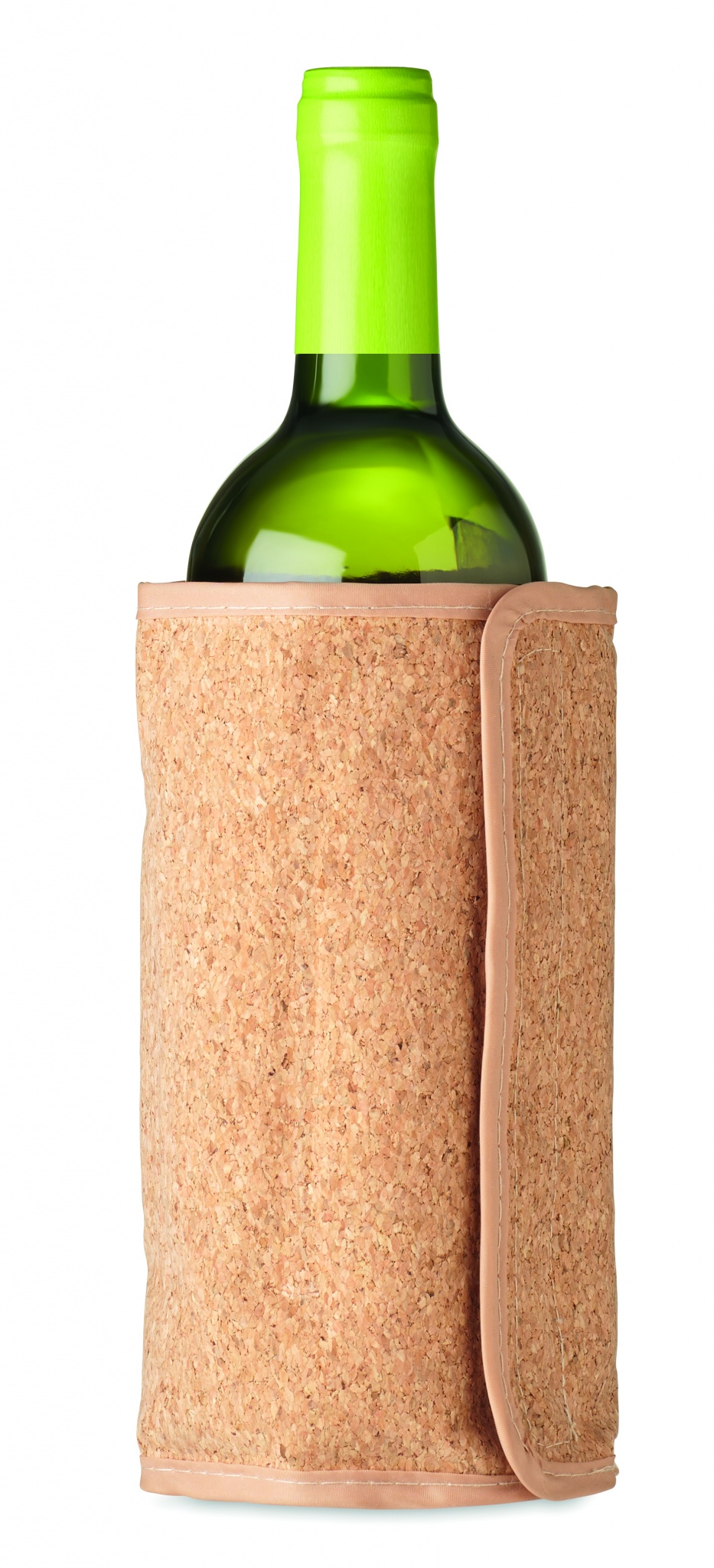 Pehmeä viinijäähdytin korkkia, jonka sisällä on geelitäytteinen PVC- levy. Levyssä on säädettävä tarrakiinnitys. Korkki on luonnonmateriaali, strukturaalinen laatu ja pinnan huokoisuus voi aiheuttaa eroavaisuuksia tuotteissa painatuksen jälkeen.