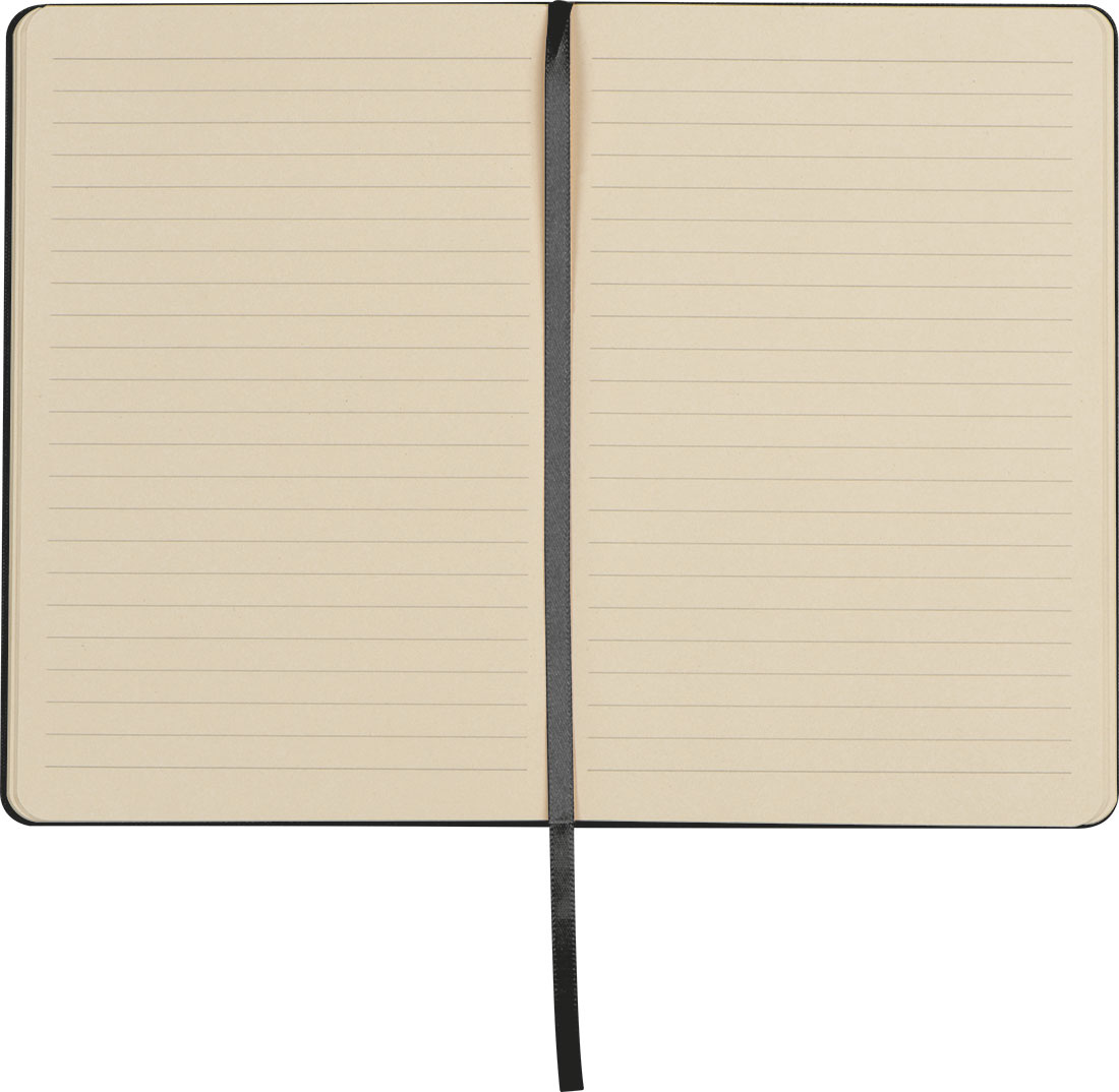 Kestävä A5-muistivihko, jossa on kierrätetystä PET:stä valmistettu kudottu kansi ja 160 sivua sokeriruokopaperia. Siinä on myös kirjanmerkki ja joustava suljinnauha.