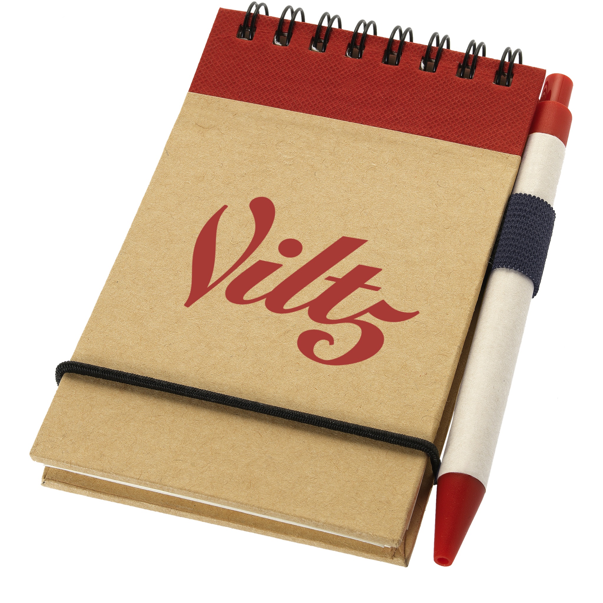Zuse-muistio ja kynä, kierrätetty, koko A7, Luonnollinen / punainen