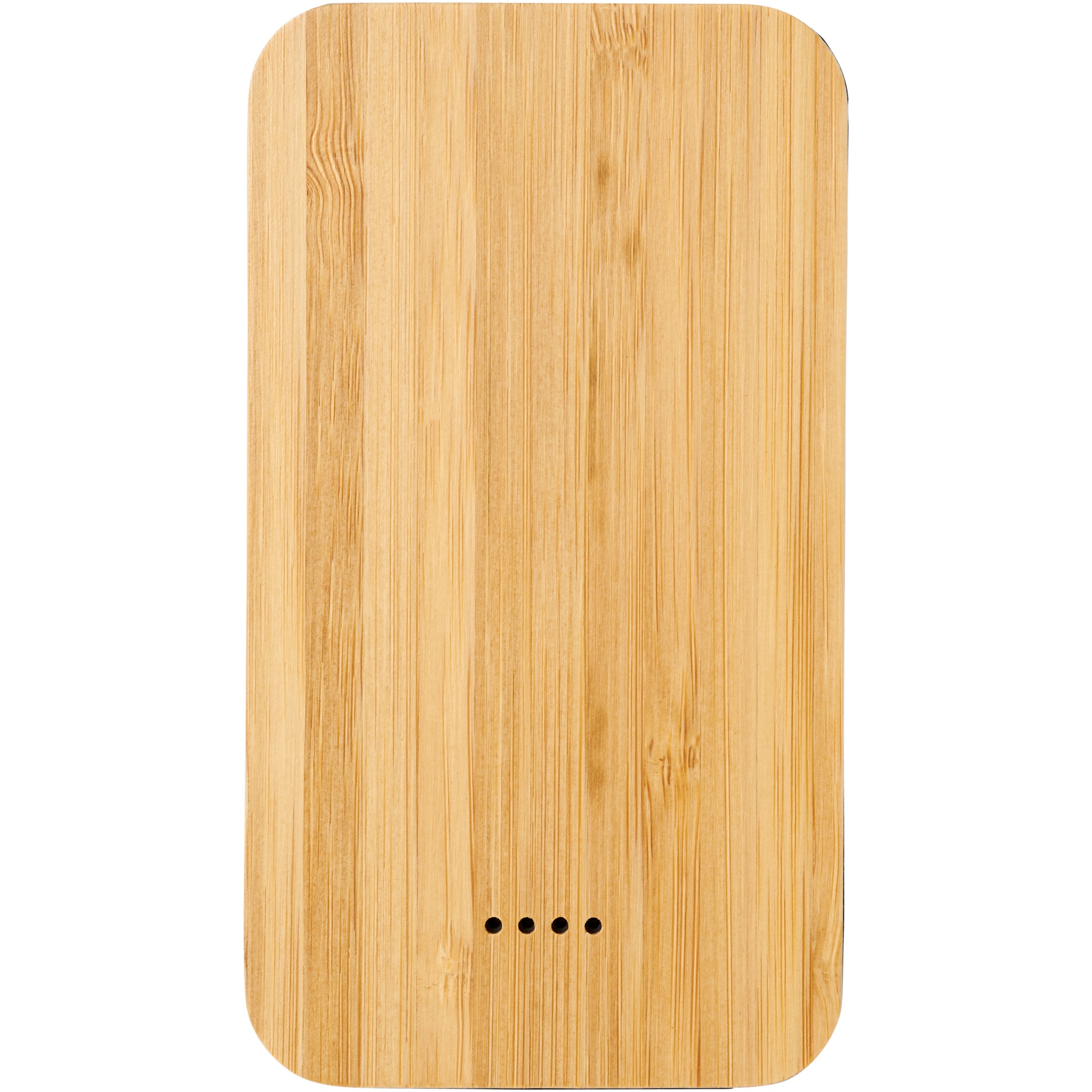 Tvaresnis pasirinkimas! Bambuko / audinio 6000 mAh belaidis maitinimo blokas pagamintas iš tikro bambuko ir ekologiškos medvilnės audinio. Jame yra A klasės 6000 mAh ličio polimero baterija ir galima įkrauti išmanųjį telefoną be laidų. Palaiko belaidį įkrovimą iki 1A įrenginiuose, kuriuose yra belaidžio įkrovimo funkcija. Belaidis įkrovimas veikia tik su jį palaikančiais įrenginiais. Įrenginiams, kurie nepalaiko belaidžio įkrovimo, reikalingas išorinis belaidžio įkrovimo imtuvas arba imtuvo dėklas. Komplekte Micro USB įkrovimo laidas. Telefonus taip pat galima įkrauti laidu per 5V/2A USB išvestį.