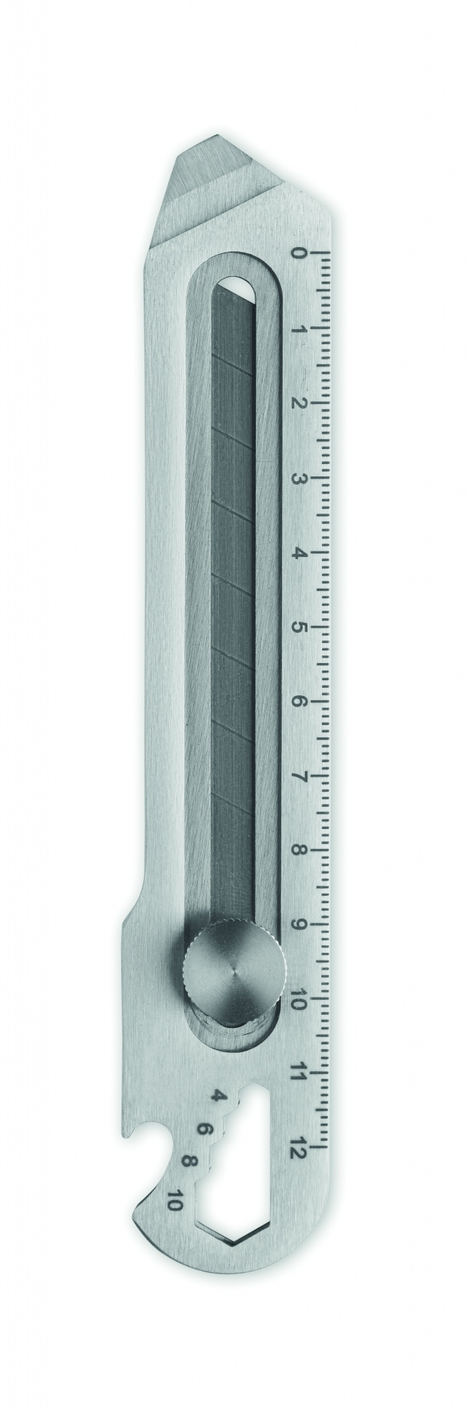 Nerūdijančio plieno ištraukiamas peilis su 8 anglinio plieno ašmenimis, butelių atidarytuvu, veržliarakčiu ir liniuote.