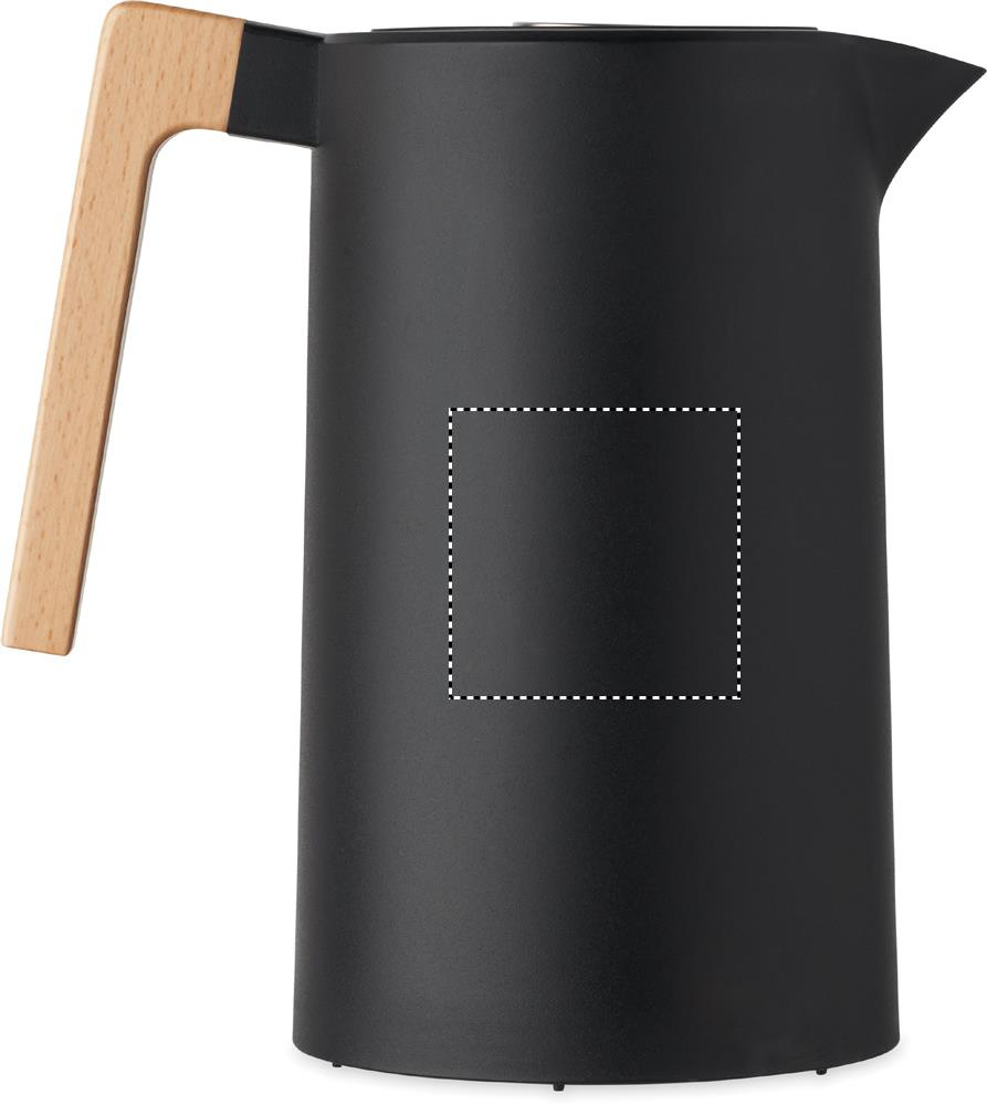 Dubultsienu izolēta vakuuma krūze no pārstrādāta nerūsējošā tērauda (90% pārstrādāta nerūsējošā tērauda un 10% nerūsējošā tērauda) iekšpusē un polipropilēna (PP) ārējā siena ar koka rokturi. Tilpums: 1 l.