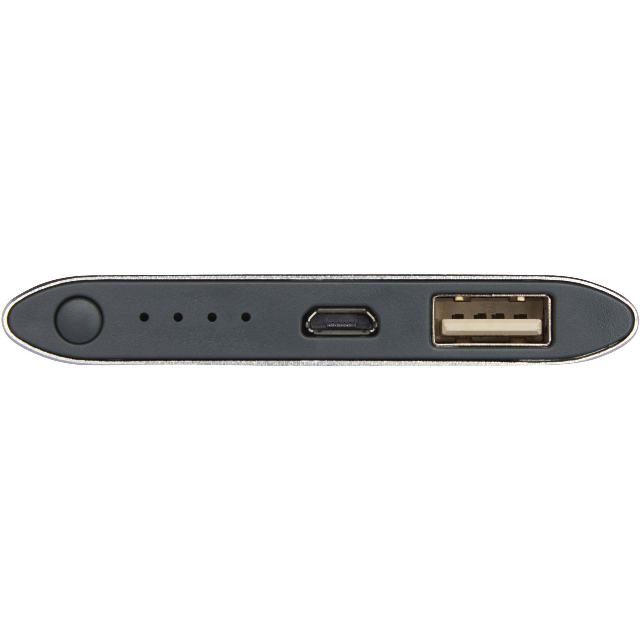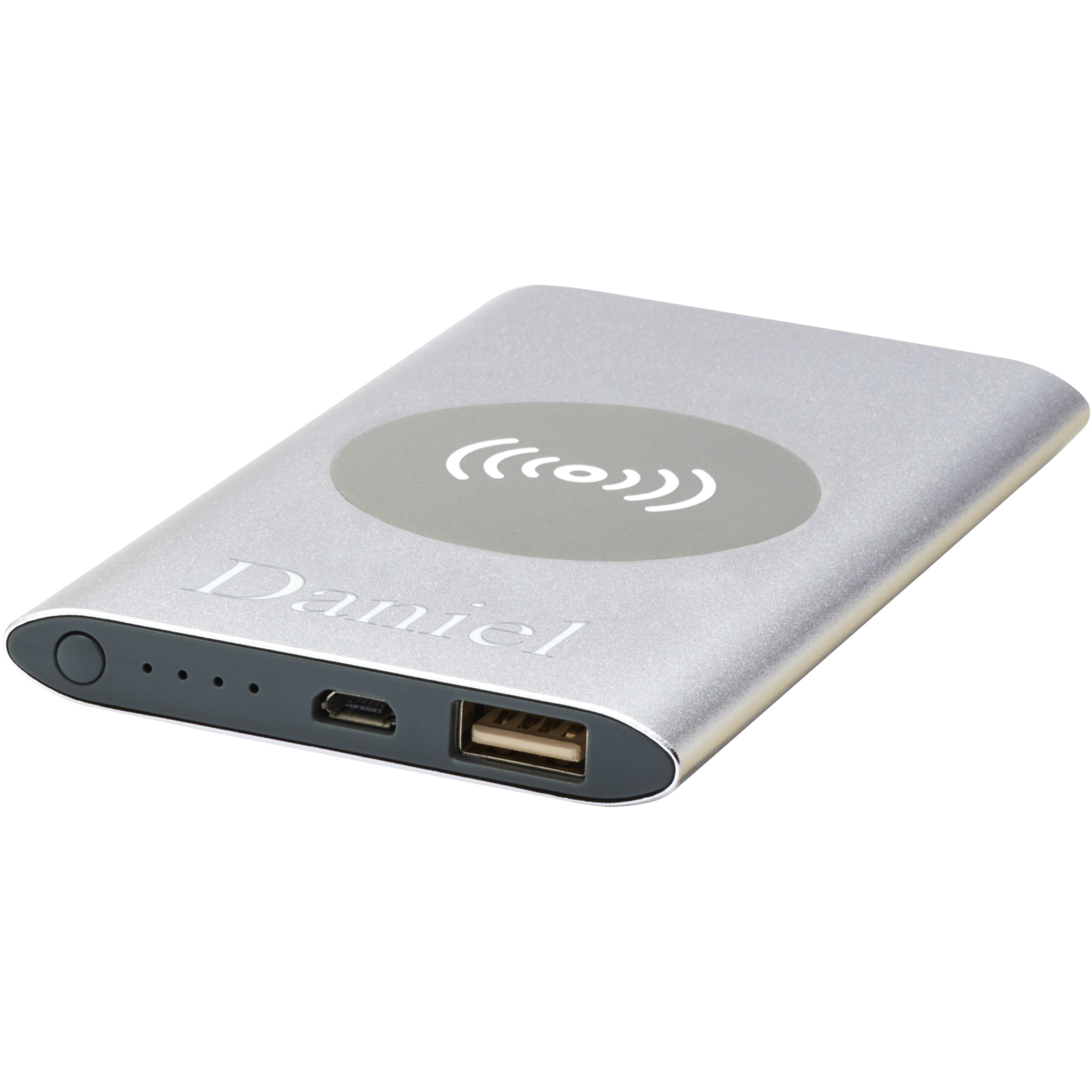 4000mAh jaudas banka ar alumīnija korpusu. Atbalsta 5 W bezvadu uzlādi, kā arī ir aprīkots ar Micro USB izeju, lai nodrošinātu uzlādi, izmantojot kabeli. Ar 4000 mAh litija polimēru akumulatoru tas var pilnībā uzlādēt viedtālruni. Jaudas indikators, kas visu laiku parāda enerģijas līmeni. Mikro USB pieslēgvieta: 5V/2A Izeja: 5V/2A. Bezvadu izeja 5W. Ietver PVC nesaturošu TPE plastmasas uzlādes kabeli. Piegādāts standarta dāvanu kastītē.