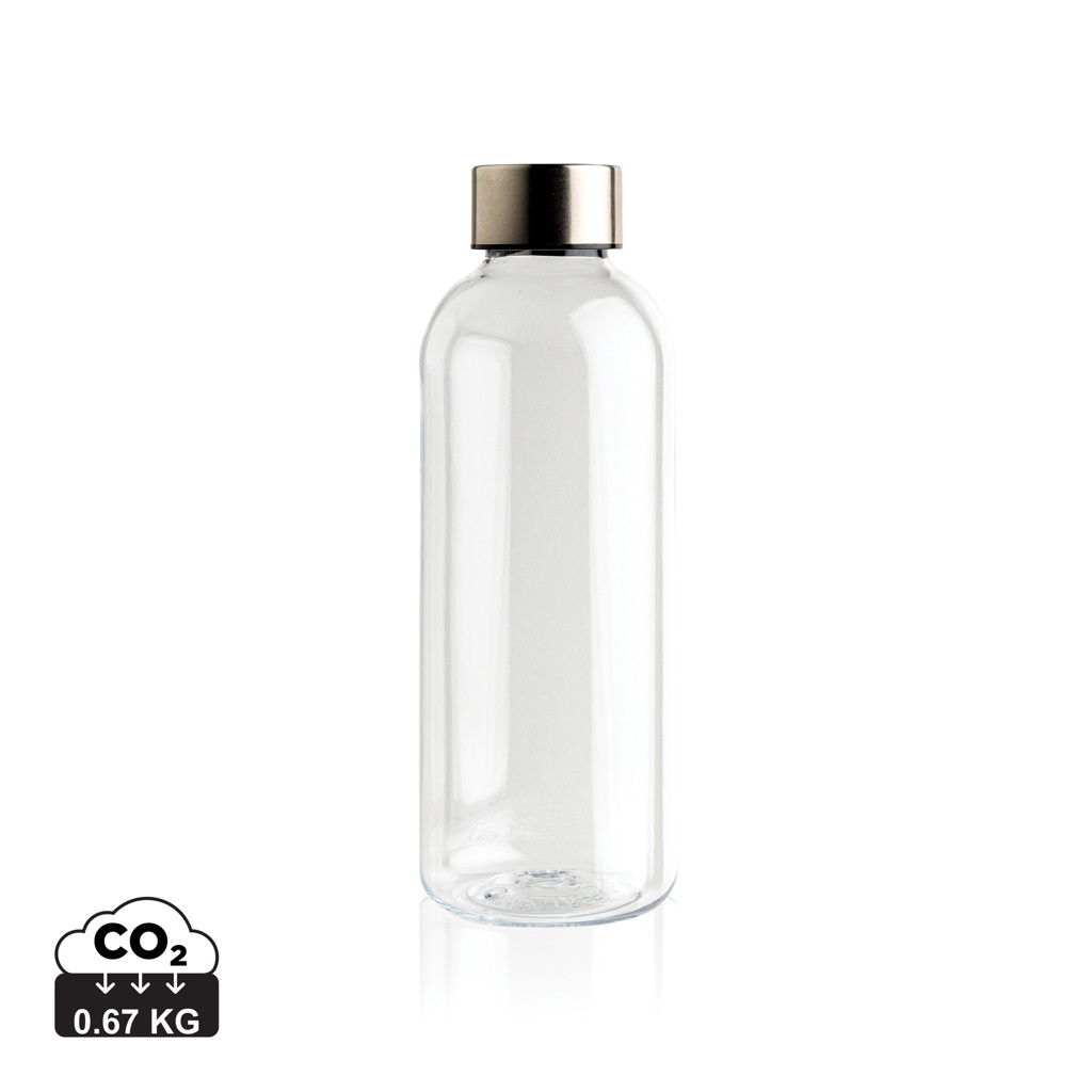 Necaurlaidīga ūdens pudele ar metāla vāku, caurspīdīgs