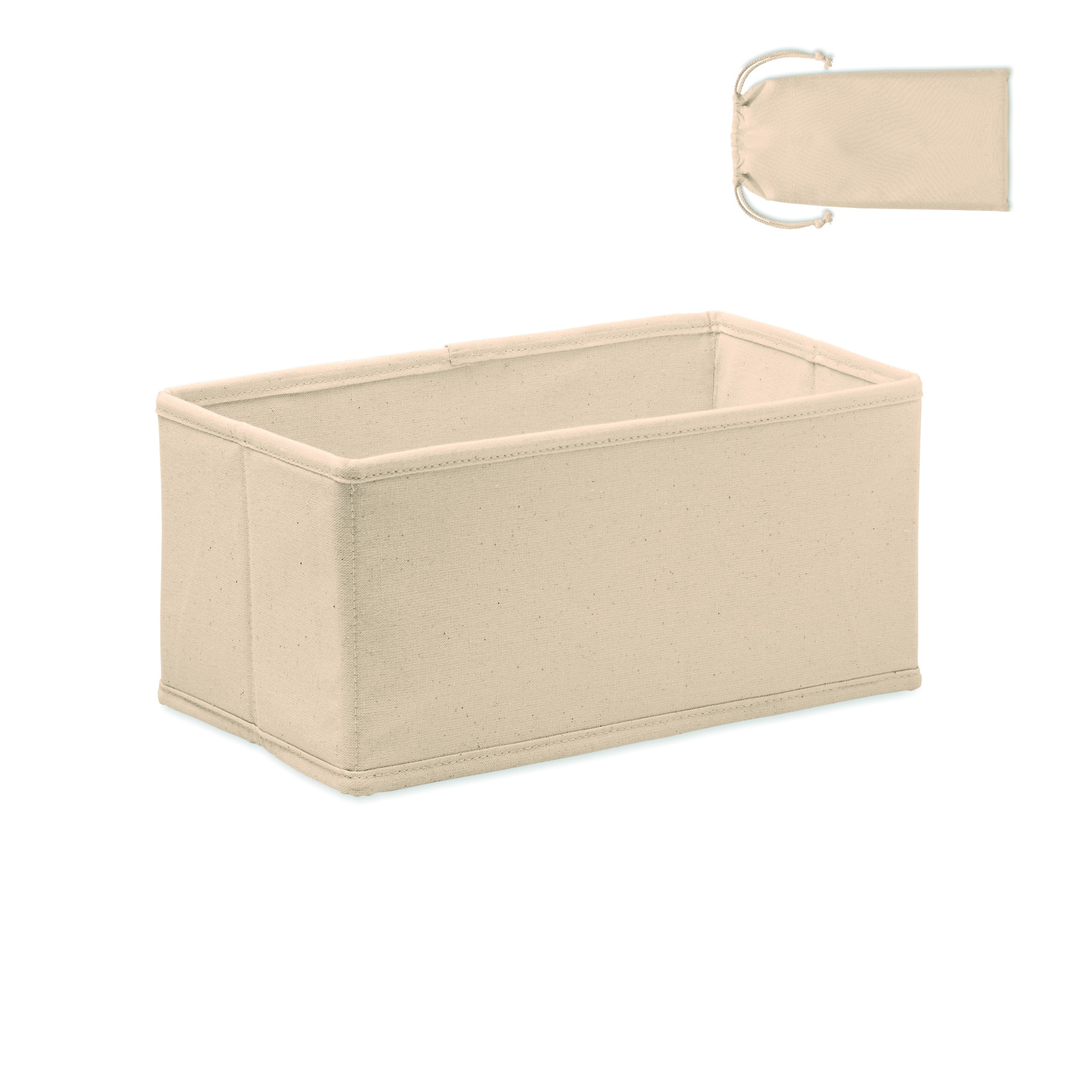 Vidēji salokāmi piederumi vai uzglabāšanas kaste no kokvilnas (220 gr/m²). Iegādāts kokvilnas (140 gr/m²) auklas maisiņā.