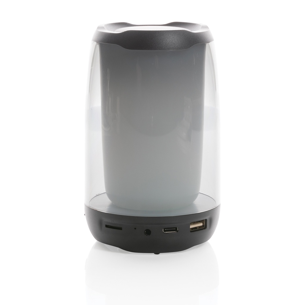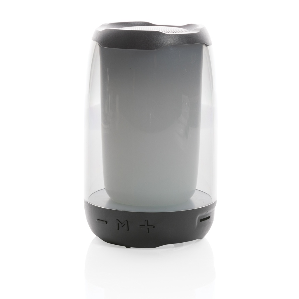Мощный беспроводной динамик мощностью 5 Вт с ослепительными светодиодными огнями RGB на 360 градусов. Lightboom будет ярко светить всю ночь. Сверхчистый звук в каждом направлении благодаря уникальному дизайну. Корпус изготовлен из переработанного пластика ABS/PS стандарта RCS. Общее содержание переработанных материалов: 33% от общего веса изделия. С литиевой батареей емкостью 1200 мАч для воспроизведения до 5 часов. Зарядка выполняется за 4 часа. Со встроенным микрофоном для ответа на звонки. Со встроенным слотом TF, портом AUX и портом USB. Поставляется с BT 5.0 для плавной работы на расстоянии до 10 метров. В комплект входит зарядный кабель из переработанного материала TPE без ПВХ. Изделие и аксессуары на 100% не содержат ПВХ. Упаковано в упаковку FSC mix.