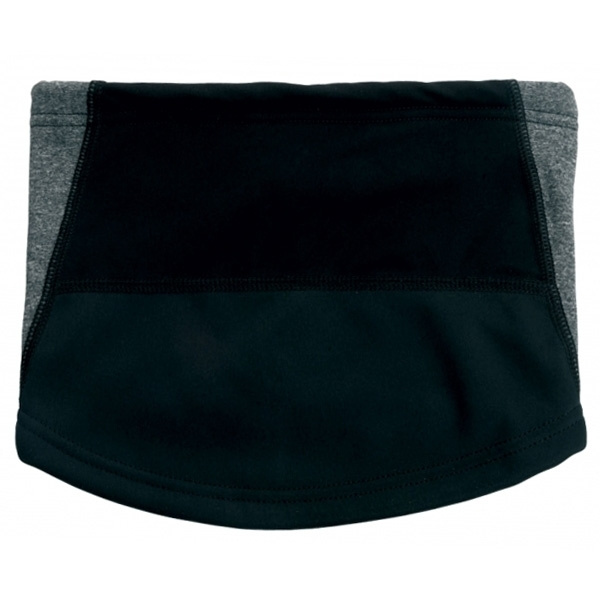 Многофункциональный платок для шеи в черно-сером цвете. Платок подходит для зимней погоды, имеет резинку для стягивания на шее, или вы можете использовать его как шапку. Он изготовлен из черного эластичного флиса (85% полиэстер, 15% спандекс), серого флиса (92% полиэстер, 8% спандекс) и подкладки из мягкого флиса (100% полиэстер).