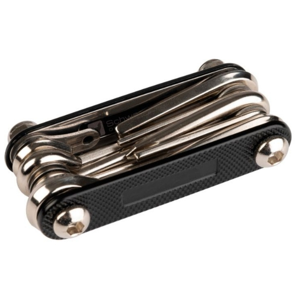 Практичный набор инструментов для байкеров. Включает в себя многофункциональный инструмент для ремонта велосипеда и петлю. Упакован в коробку Schwarzwolf.