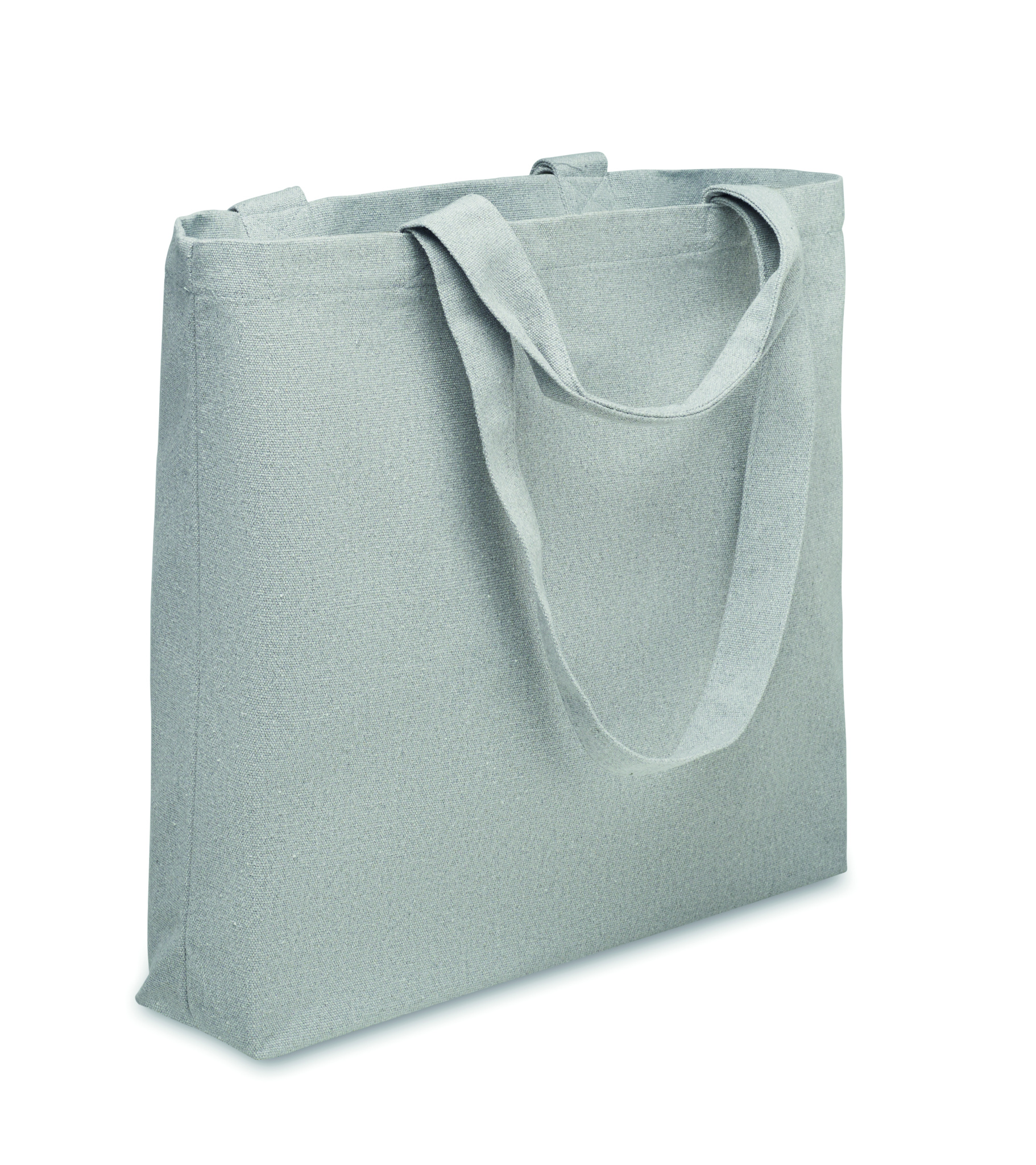 Shopping/beach bag in recycled fabrics (60% recycled cotton, 40% recycled polyester) with short and long handles. 320 gr/m².