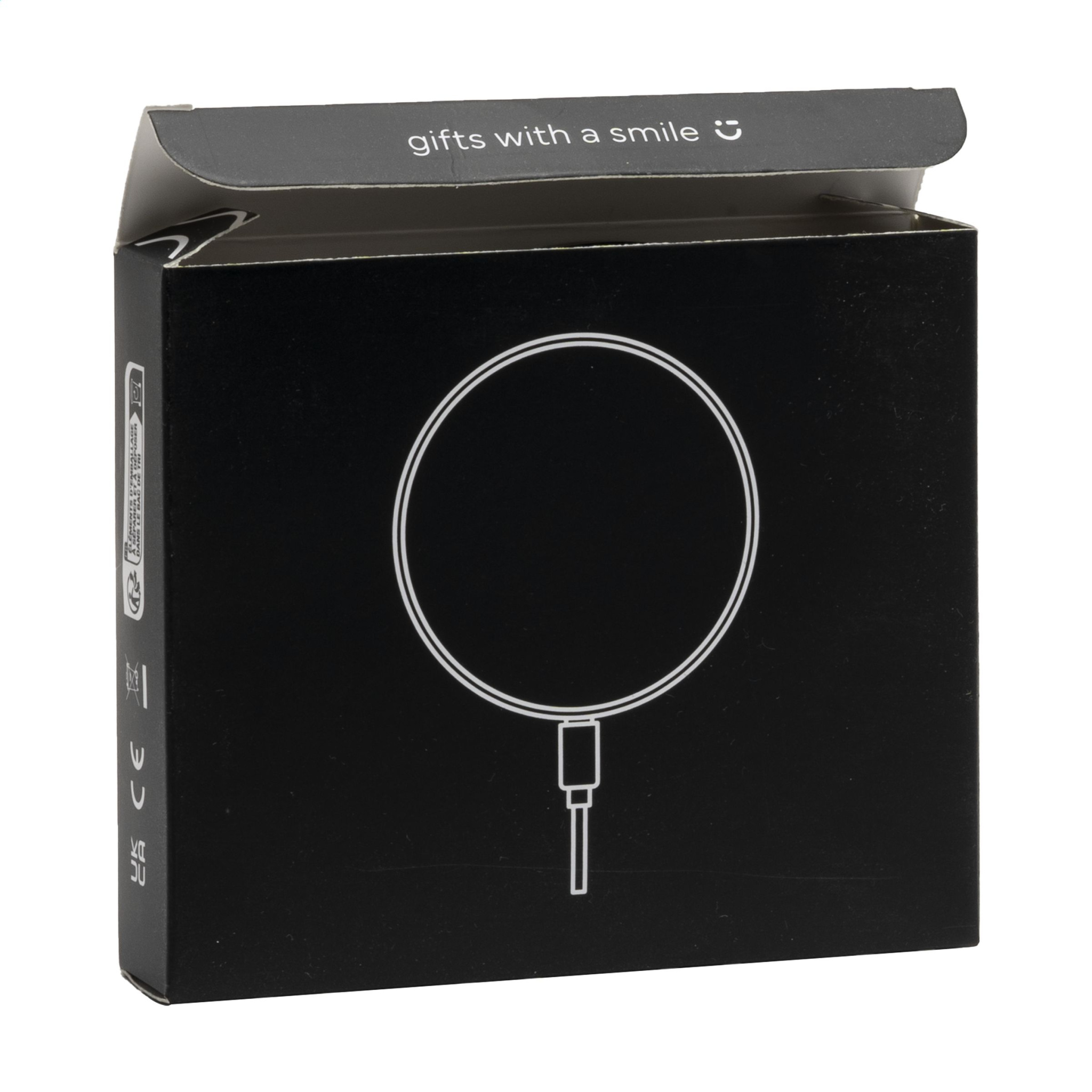 Беспроводное зарядное устройство 10 Вт. Корпус изготовлен из переработанного АБС-пластика. Совместимо со всеми мобильными устройствами, поддерживающими беспроводную зарядку QI (последнее поколение Android и iPhone 8 и выше). Вход: 9 В/1,1 А. Беспроводной выход: 9 В/1,1 А 10 Вт. В комплект входят кабель (USB-A и тип C) и руководство пользователя. Этот продукт и его аксессуары не содержат ПВХ. Сертифицировано RCS. Общее количество переработанного материала: 20%. Каждый предмет упакован в индивидуальную коробку.