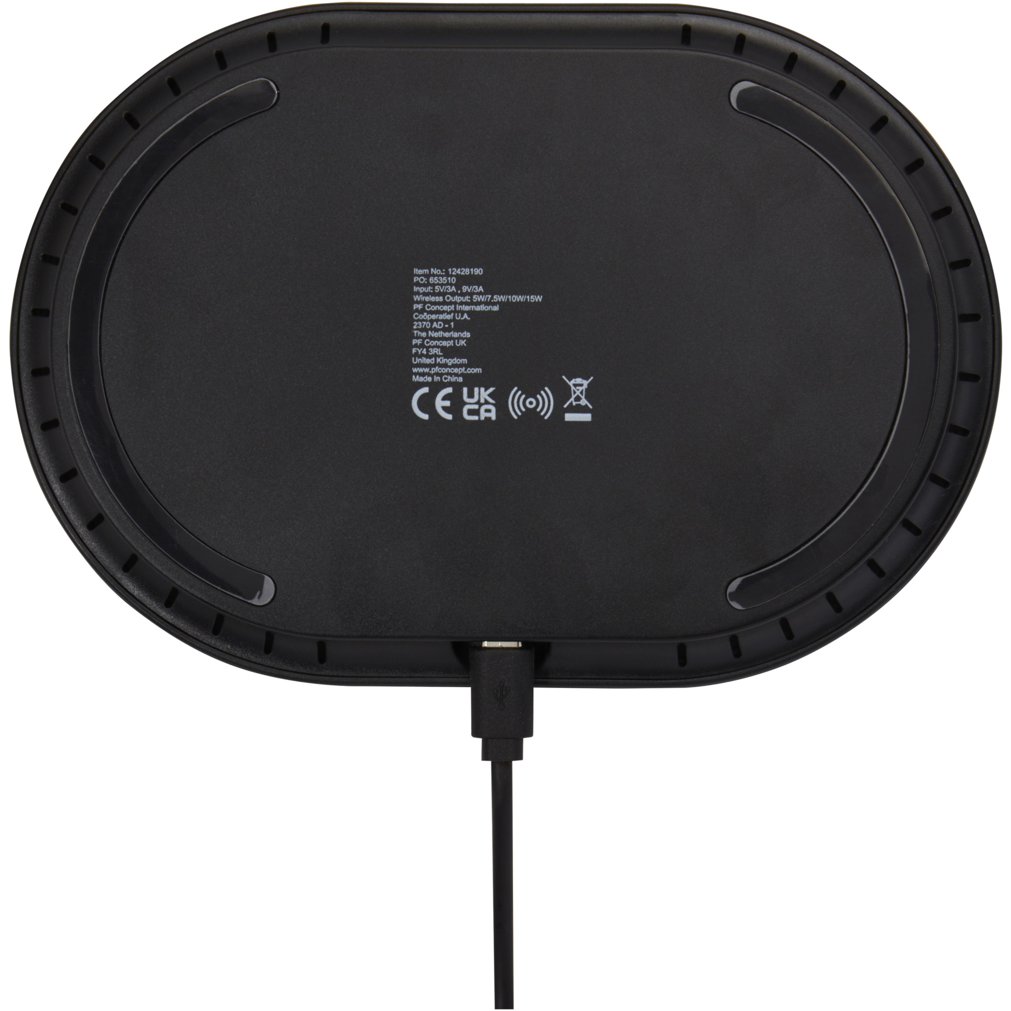 Беспроводное зарядное устройство с поддержкой быстрой зарядки и пульсирующим световым эффектом RGB. Выходная мощность беспроводной зарядки составляет до 15 Вт, благодаря чему зарядка происходит до 3 раз быстрее, чем при использовании беспроводных зарядных устройств мощностью 5 Вт. Встроенная функция проверки на наличие посторонних предметов для избегания риска возгорания. Совместимо со всеми устройствами Qi (iPhone 8 и выше и устройствами Android, поддерживающими беспроводную зарядку). Поставляется в подарочной коробке Avenue.