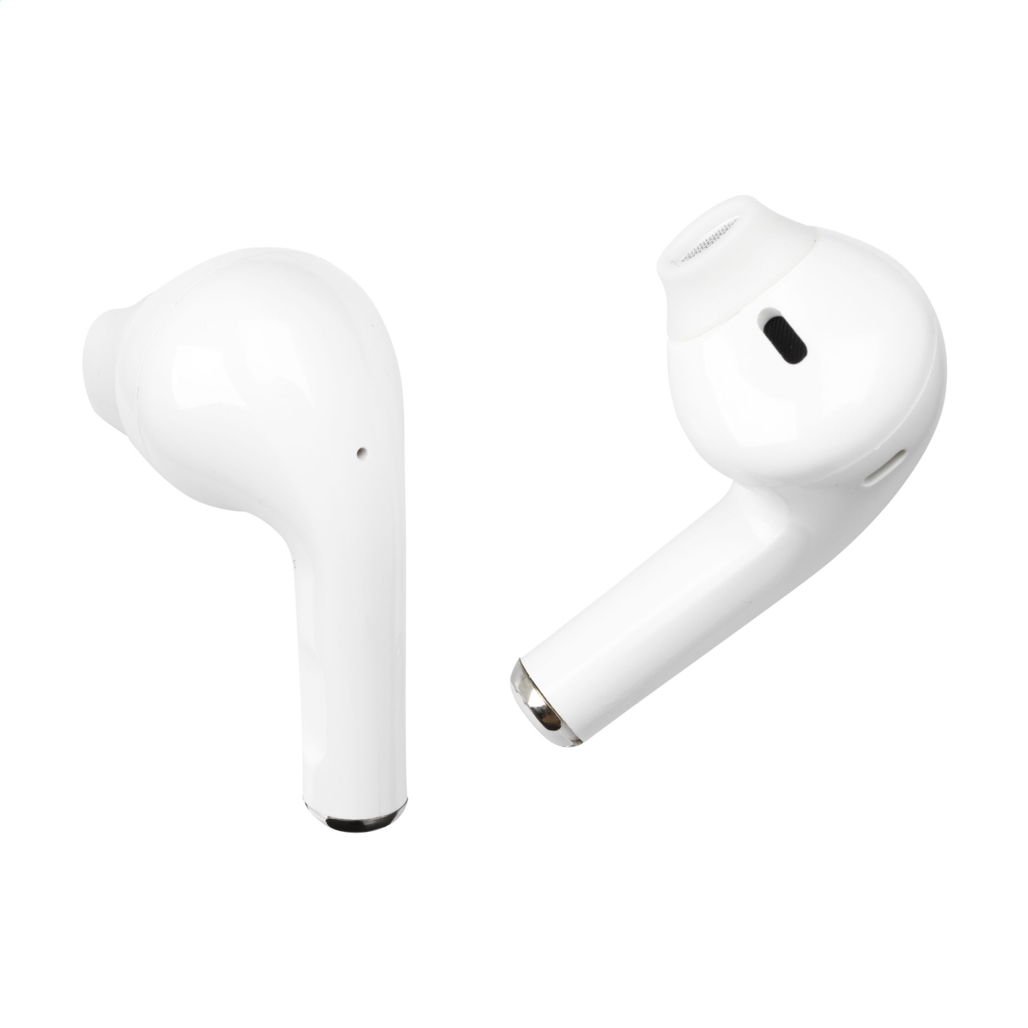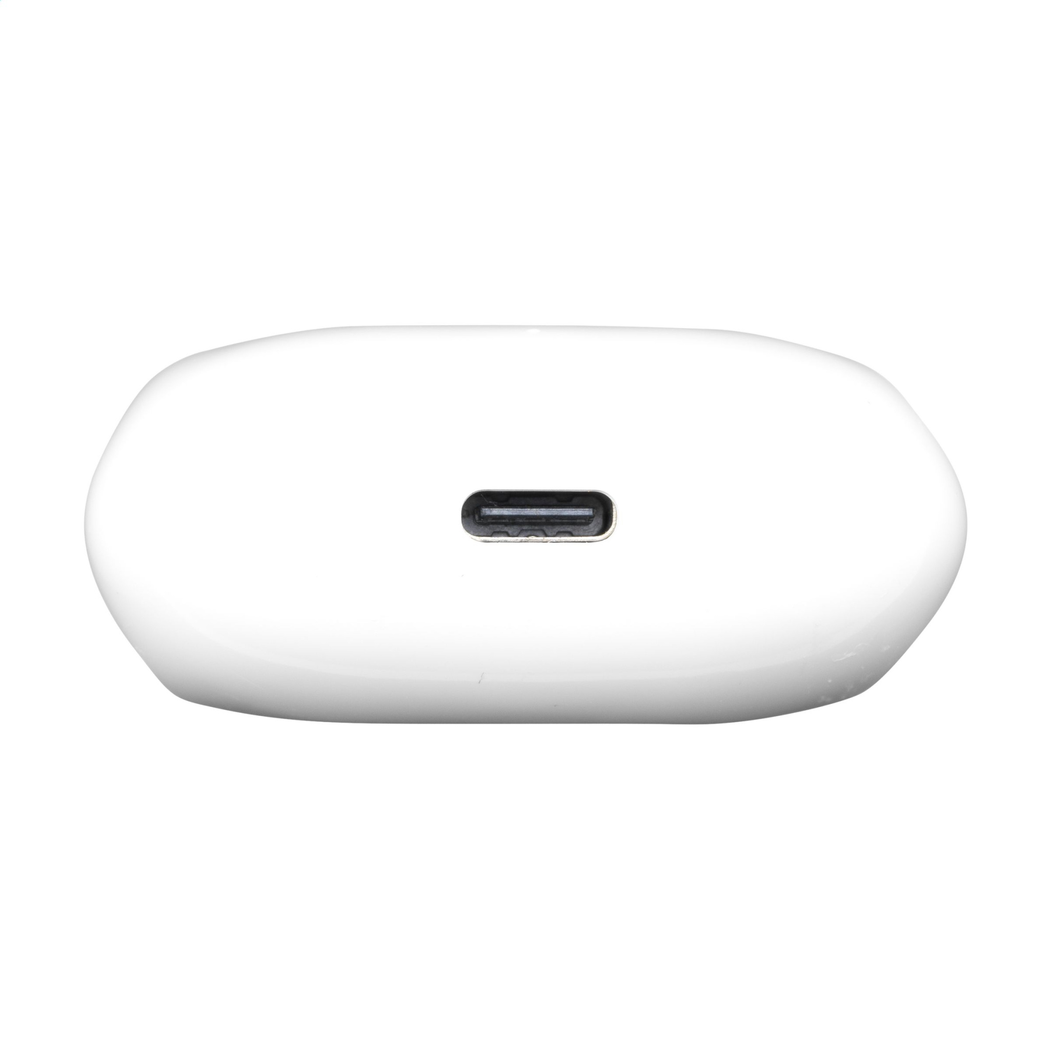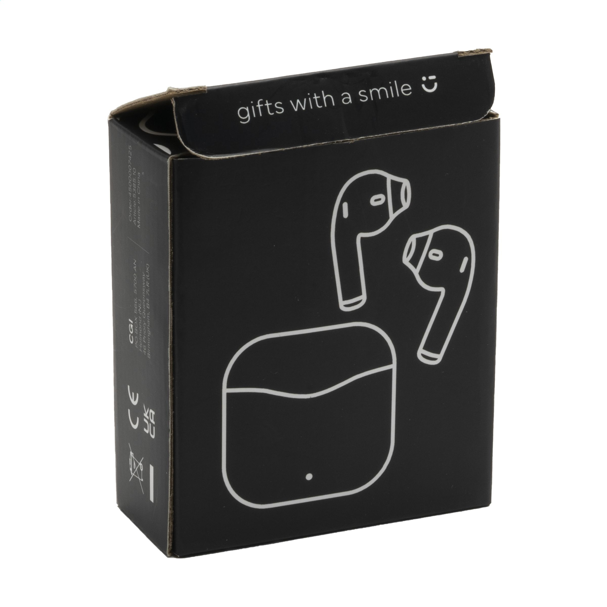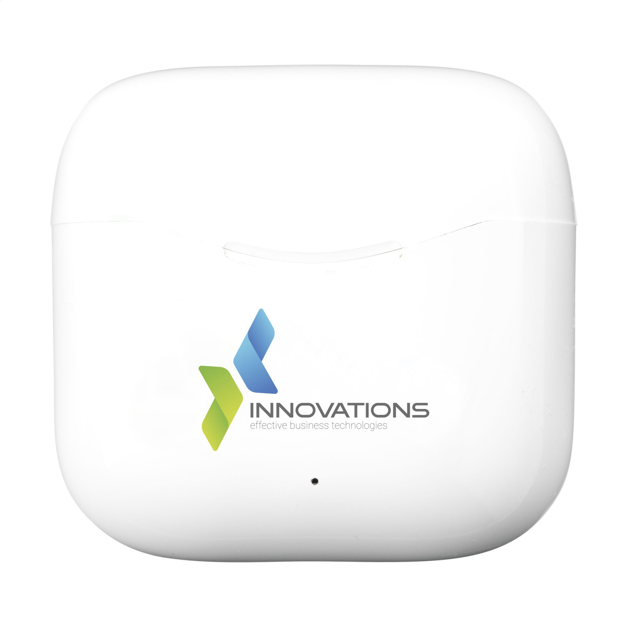 Настоящие беспроводные наушники нового поколения в чехле для зарядки из переработанного АБС. Эти наушники используют BT 5.1 для плавного соединения. Наушники имеют аккумулятор емкостью 30 мАч и заряжаются всего за один час с чехлом для зарядки емкостью 200 мАч. Отличное воспроизведение звука и регулируемая громкость в сочетании с технологией автосопряжения, обеспечивающей автоматическое сопряжение и сенсорное управление. Легко совершайте звонки по телефону без помощи рук и наслаждайтесь музыкой без ограничивающих кабелей. Соединение имеет радиус действия 10 метров. В комплект входит кабель для зарядки типа C без ПВХ и руководство пользователя. Сертифицировано RCS. Общее количество переработанного материала: 62,5%. Каждый предмет упакован в индивидуальную коробку.
