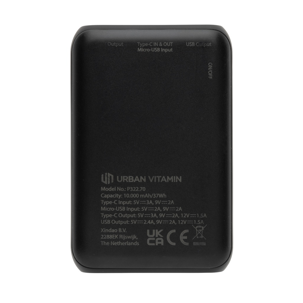 Лого трейд бизнес-подарки фото: Блок питания Urban витамин Аламеда 10 000 мАч, 18 Вт, PD