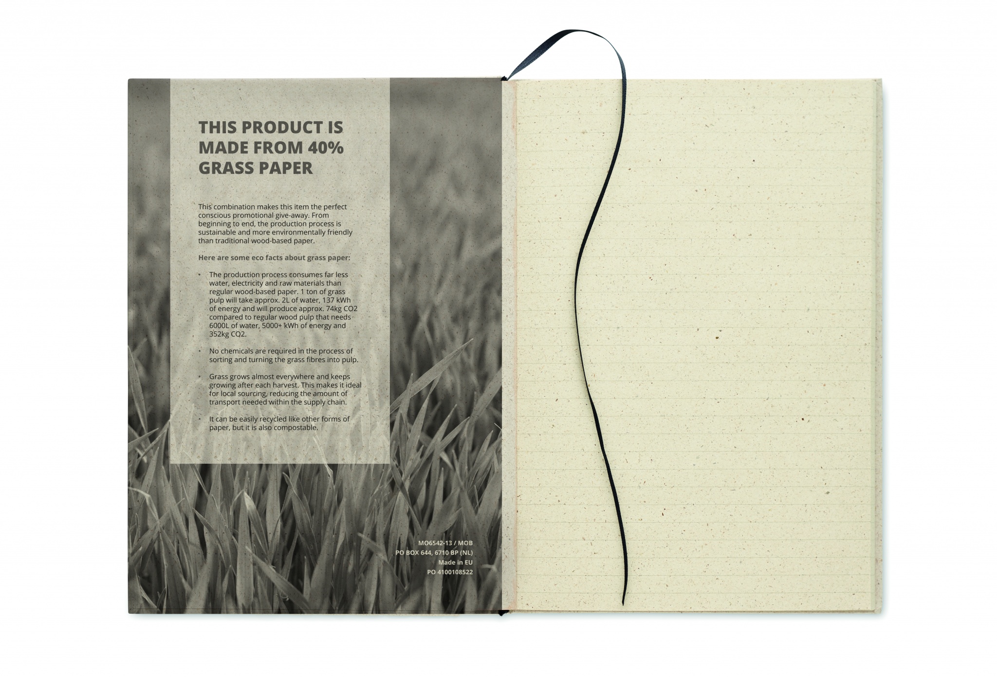 Блокнот A5 в картонной обложке, 80 линованных листов из бумаги содержащей семена травы (40%). Сделано в ЕС.