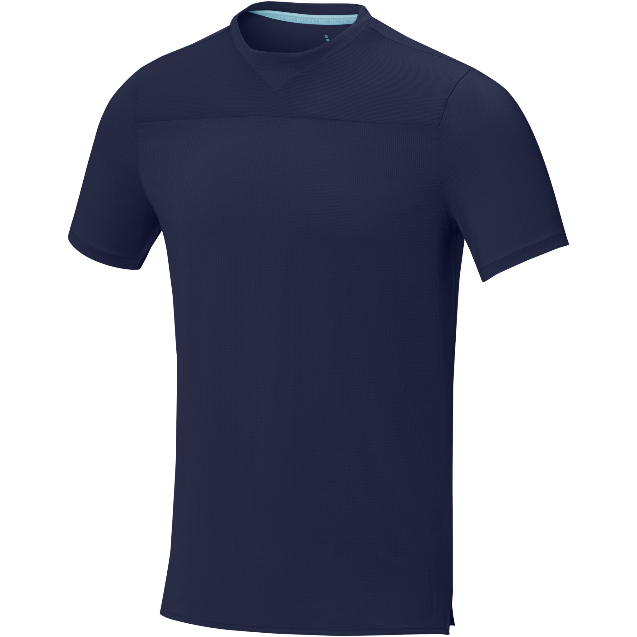 Мужская футболка Borax с коротким рукавом и удобной посадкой - это идеальное сочетание стиля, экологичности и спортивного стиля. Изготовлена из 90% переработанных материалов, сертифицированных GRS, в смеси с эластаном для обеспечения растяжимости и комфорта, вес ткани составляет 160 г/м2. Отделка cool-fit помогает сохранять прохладу и сухость. Сертификация GRS гарантирует 100% сертифицированную цепочку поставок от сырья до наших технологий печати, что делает эту одежду экологически чистым выбором.