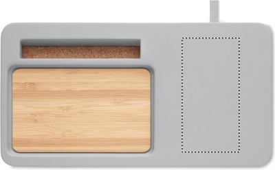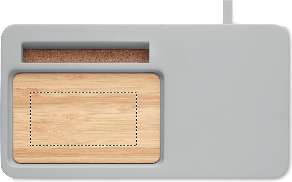 Настольный органайзер с беспроводным зарядным устройством из смеси цемента и бамбука. В комплекте USB-кабель длиной 100 см. Выход DC5V/1A (10W). Совместим со всеми устройствами с поддержкой QI, такими как новейшие андроиды, iPhone® 8, X и новее. Бамбук является натуральным материалом, могут быть небольшие различия в цвете
