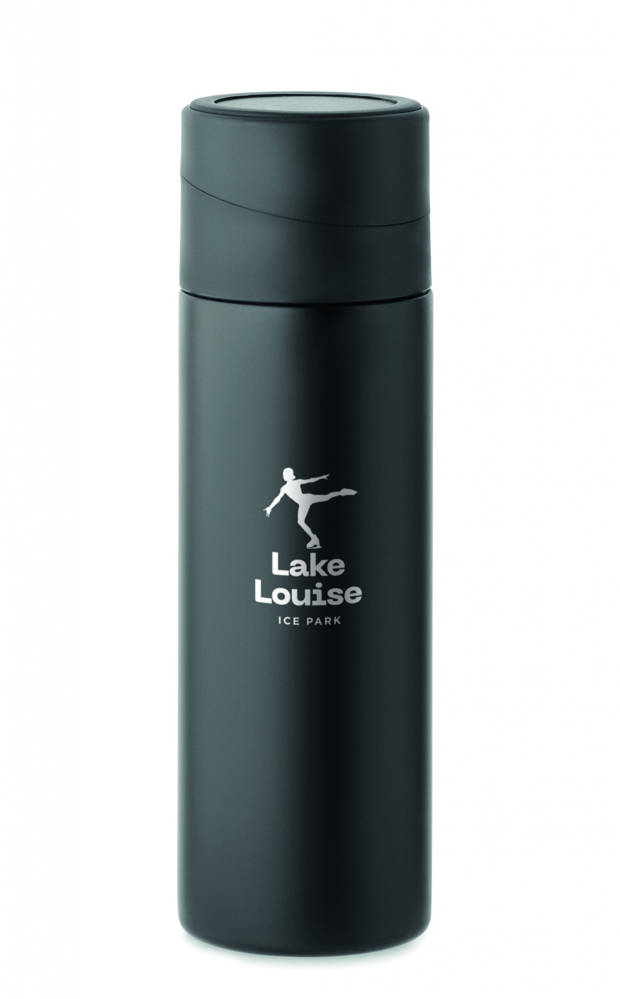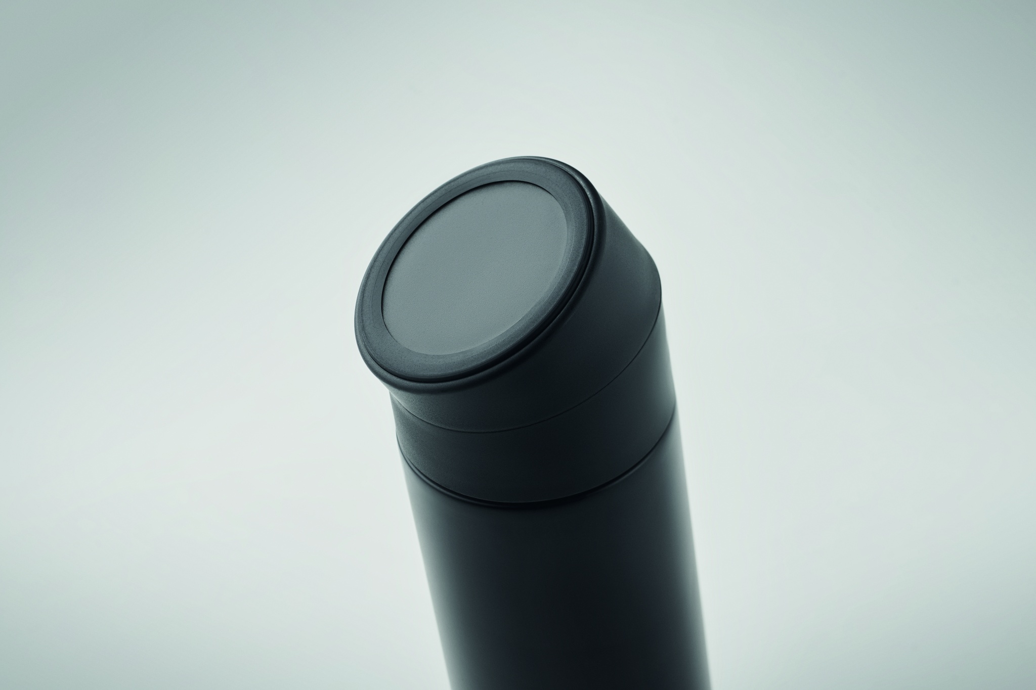 Бутылка с двойными стенками из переработанной нержавеющей стали (90%) и нержавеющей стали (10%) с силиконовой нескользящей крышкой-держателем для телефона. Герметична. Объем: 420 мл.