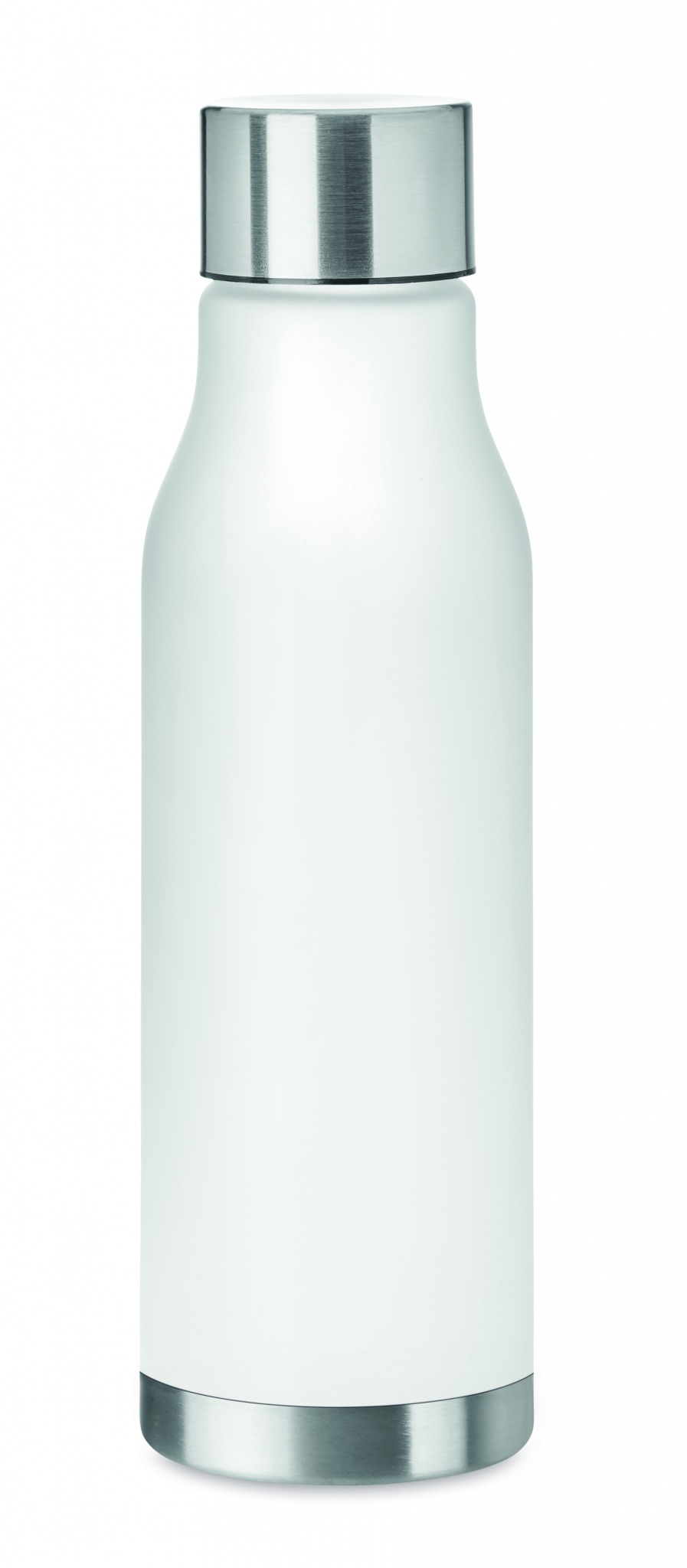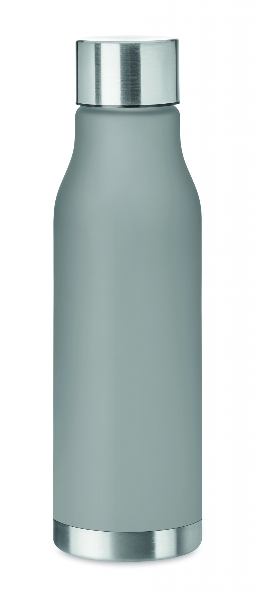 Питьевая пластиковая бутылка (RPET) с прорезиненным покрытием и крышкой из нержавеющей стали и пластика с внутренней стороны (RPET), а также силиконовым кольцом. Полная герметичность. Емкость: 600 мл.Не протекает.