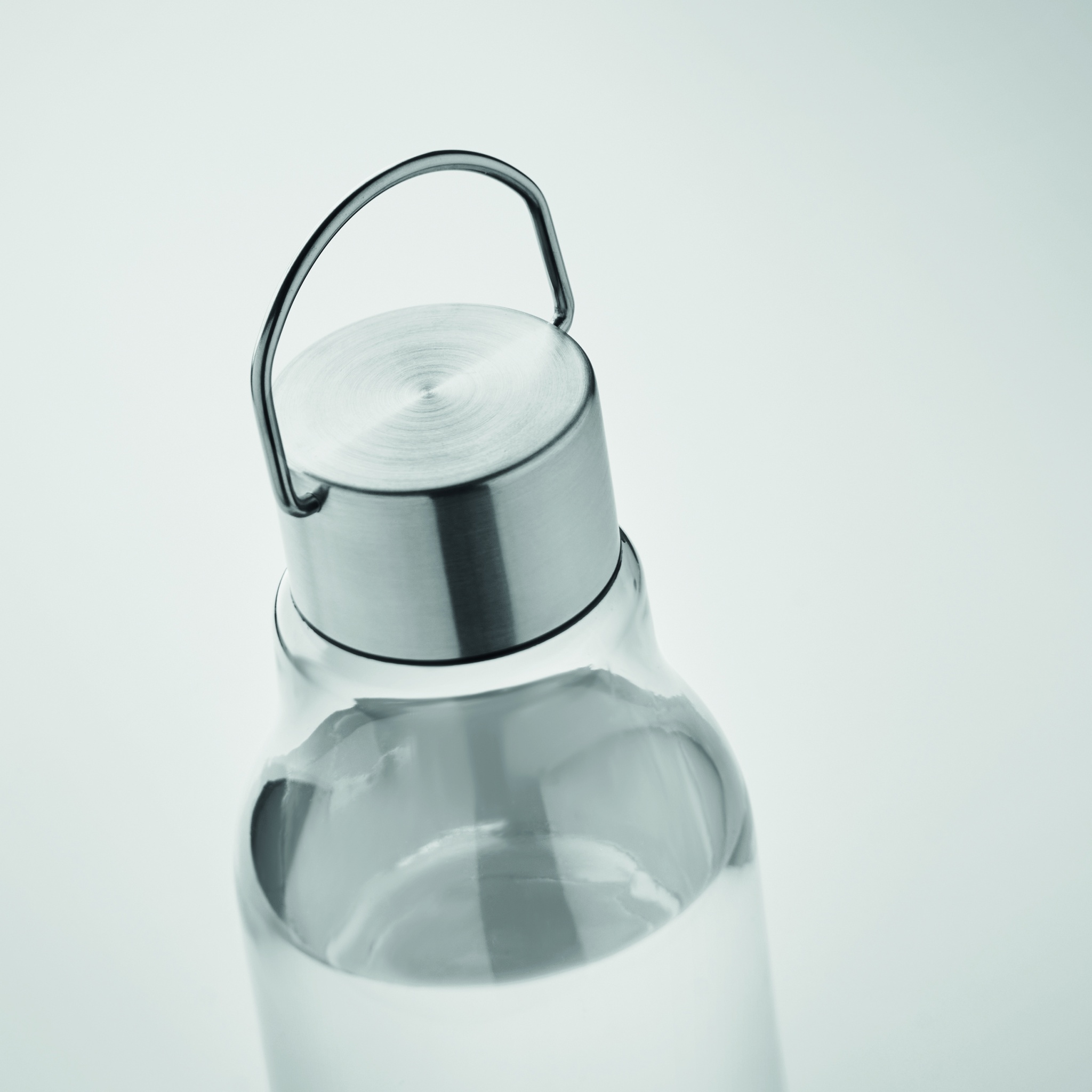 Бутылка для питья из тритана, не содержащего BPA, с крышкой из нержавеющей стали. Герметична. Емкость 800 мл. Этот продукт на 50% состоит из переаботанных отходов пластика с использованием сертификата ISCC.