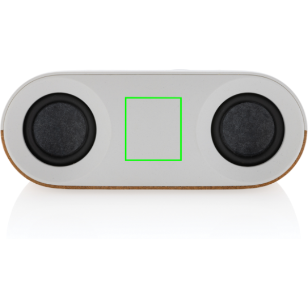 Беспроводная колонка мощностью 10 Вт, изготовленная из 100% пробки FSC® и сертифицированного RCS (Recycled Claim Standard) переработанного АБС. Общее содержание переработанных материалов: 25% от общего веса изделия. Сертификация RCS гарантирует полностью сертифицированную цепочку поставок переработанных материалов. Колонка оснащена аккумулятором емкостью 1200 мАч, обеспечивающим до 10 часов воспроизведения, и BT5.3 для бесперебойного соединения с чистым звуком. Радиус действия соединения до 10 метров. С микрофоном и функцией приема звонков для ответа на звонки. Упакована в коробку FSC mix FSC®. В комплект входит сертифицированный RCS переработанный кабель для зарядки TPE. Изделие и аксессуары на 100% не содержат ПВХ.