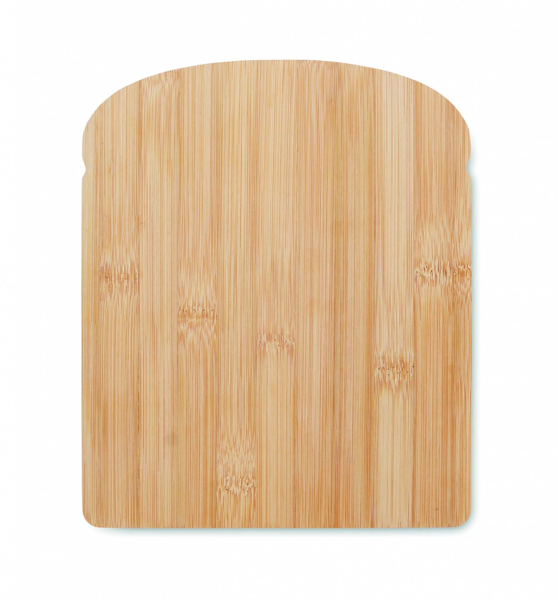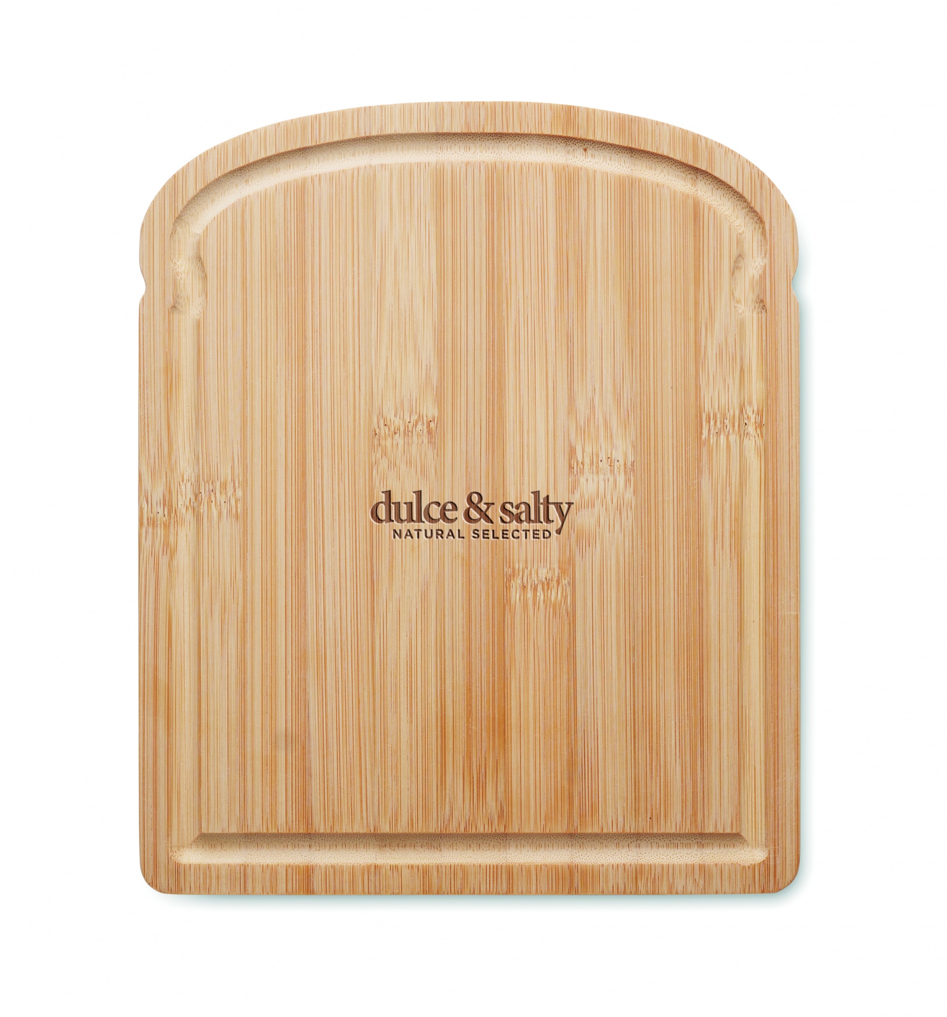 Разделочная доска в форме буханки хлеба из бамбука с желобком по краю.