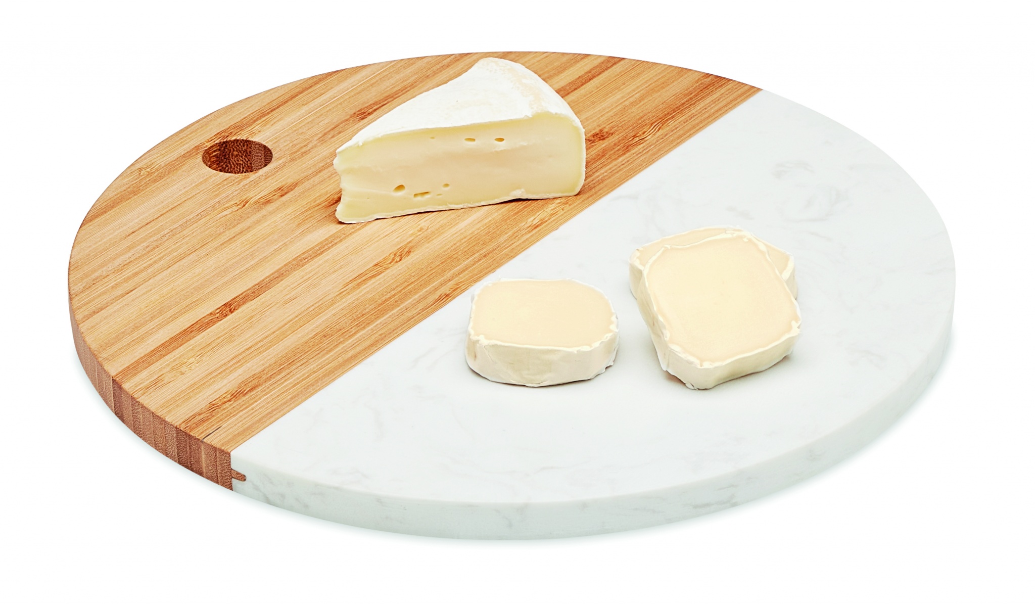 Сервировочная доска из мрамора и бамбука. Круглая форма