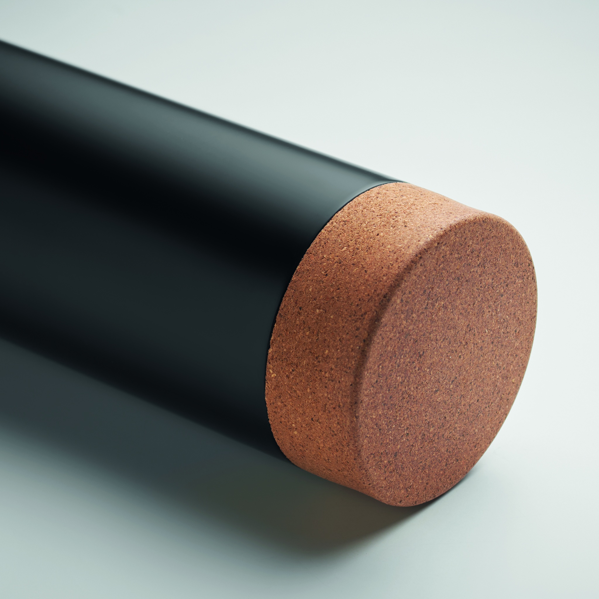 Double wall vacuum insulated flask in recycled stainless steel, the lid has a carry handle and a cork detail base. Leak-free. Capacity: 500 ml. (90% переработанной нержавеющей стали и 10% нержавеющей стали).