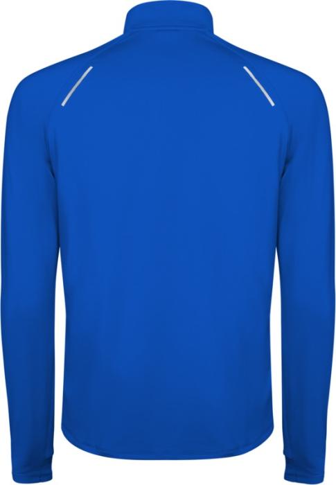 Толстовка с длинными рукавами и реглановым покроем для мужчин. Воротник с застежкой-молнией на половину длины и светоотражающими деталями. Усиленные покрытия швов. Манжеты с прорезями для больших пальцев. Светоотражающие детали на спине. Подол сзади немного длиннее переда. Внутренняя часть из теплой ткани с начесом.