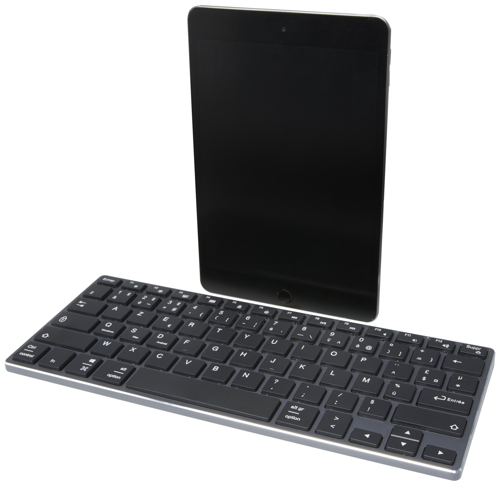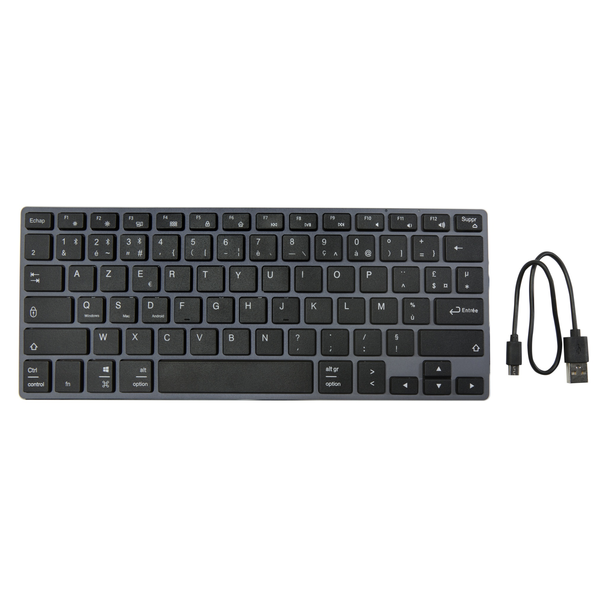 Легкая, но прочная и стильная клавиатура (раскладка AZERTY, 78 клавиш) с алюминиевым корпусом. Клавиатура поддерживает Bluetooth® 4.0 для стабильного соединения и низкого энергопотребления и совместима с ПК/ноутбуком, планшетами, мобильными телефонами, смарт-телевизорами и другими устройствами с функцией Bluetooth®. Радиус действия составляет до 10 метров, также клавиатура имеет встроенную перезаряжаемую батарею емкостью 350 мАч. Поставляется в премиальной коробке из крафт-бумаги с красочной наклейкой.