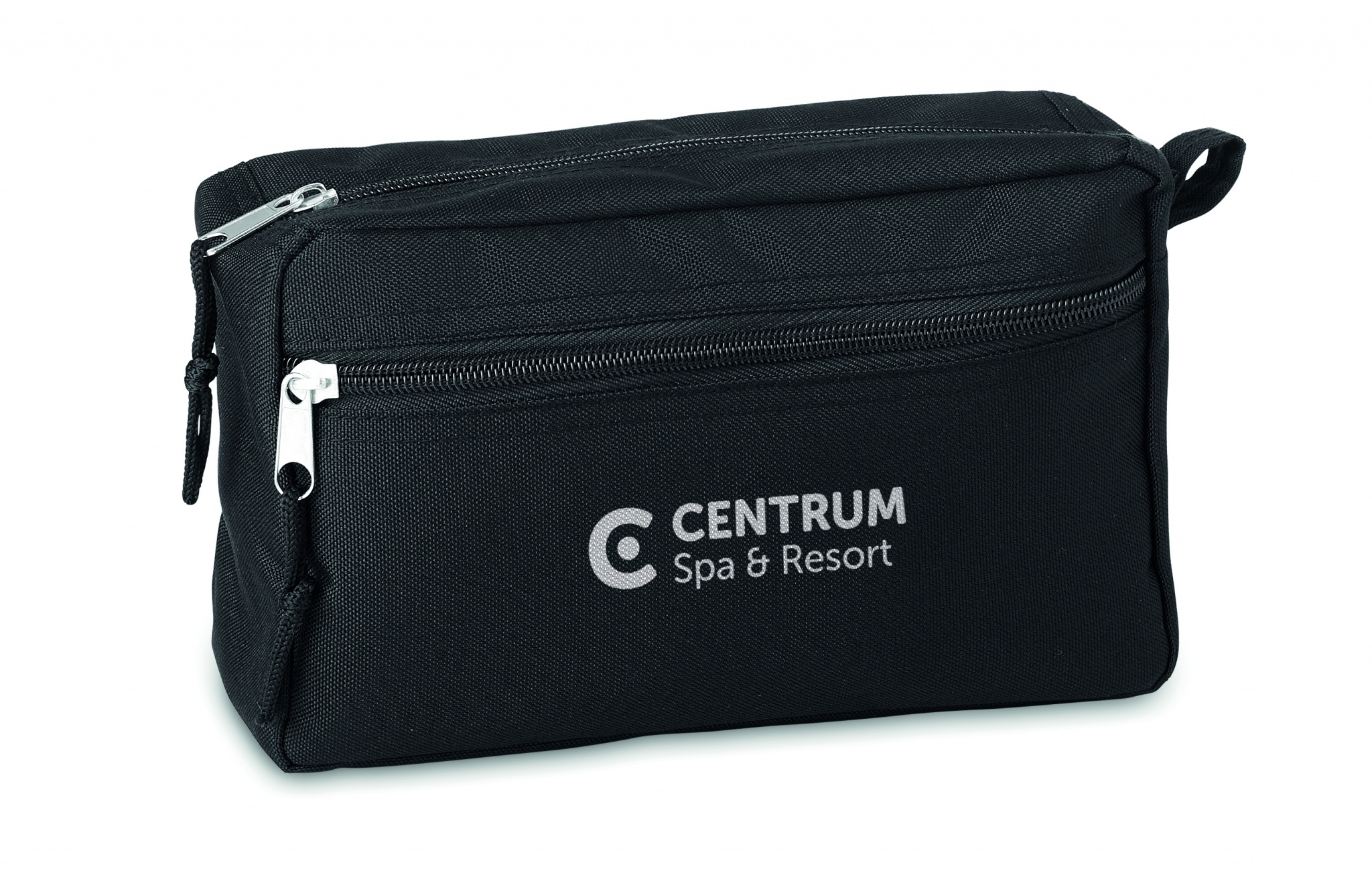 Косметичка с двойной молнией из 600D RPET с полиуретановой подкладкой.