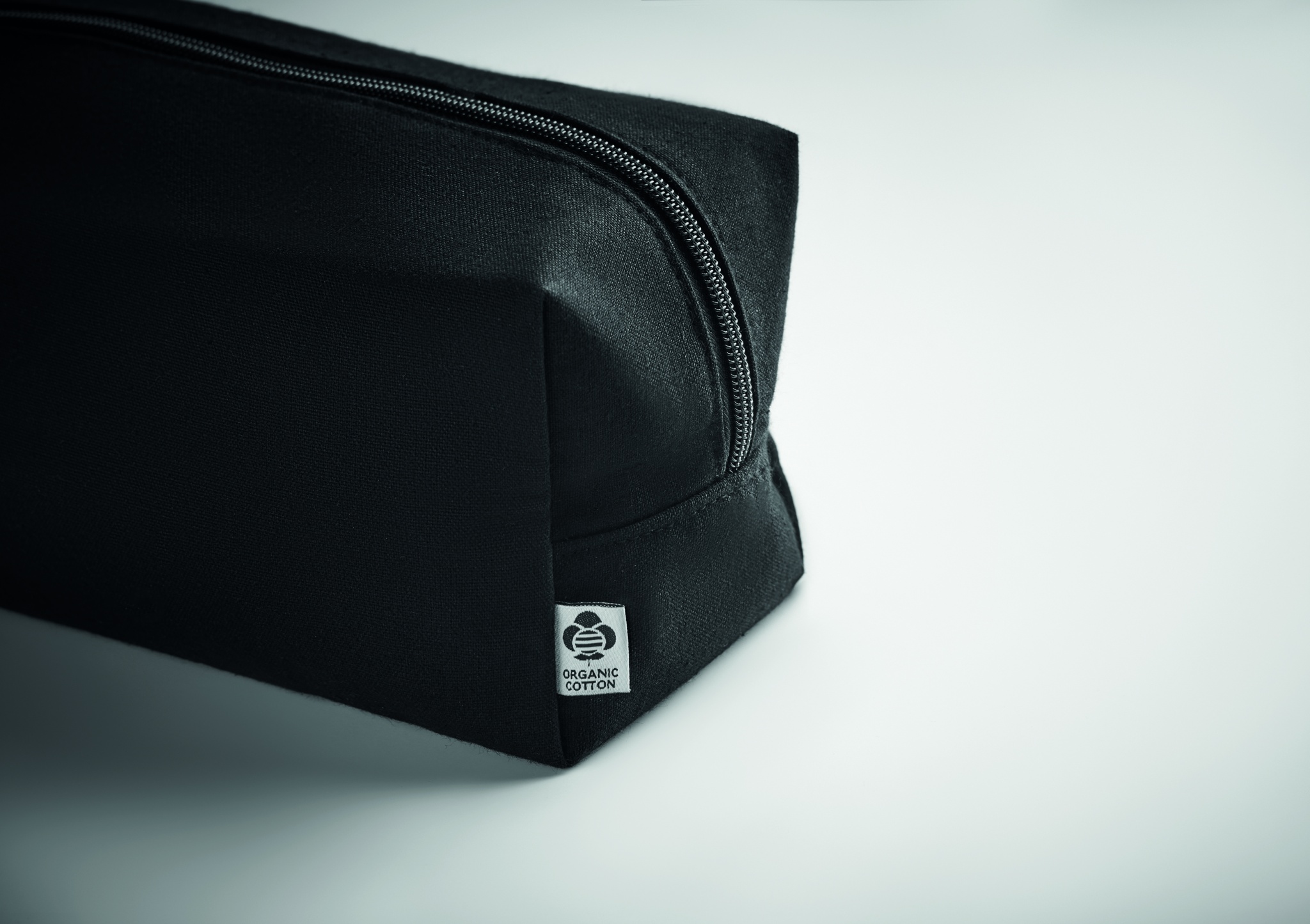 Косметичка на молнии из органического хлопка плотностью 220 гр/м². Боковая ручка и дно из полиуретана. Подкладка из органического хлопка 140 гр/м².