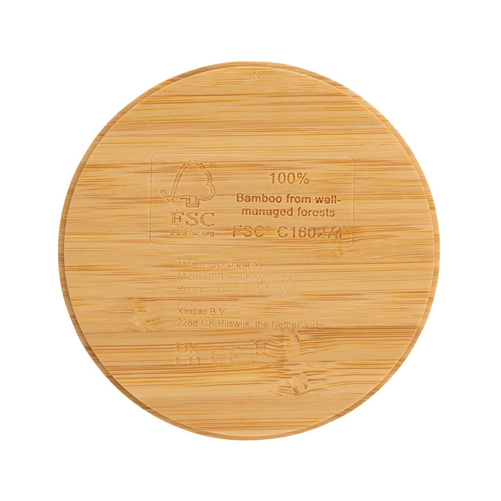 Лого трейд бизнес-подарки фото: Круглое беспроводное зарядное устройство Bamboo 5 Вт