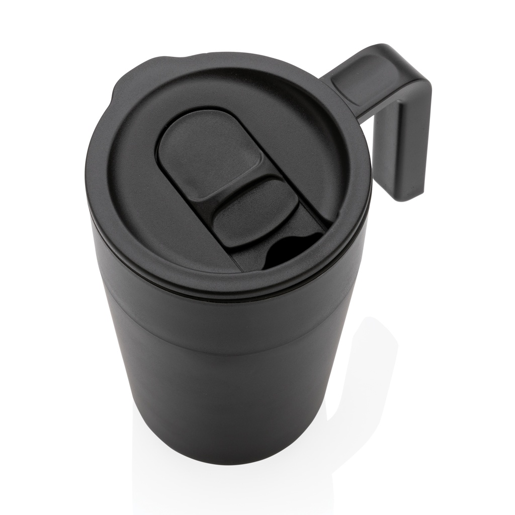 Кружка GRS из переработанного полипропилена и нержавеющей стали с ручкой, черный