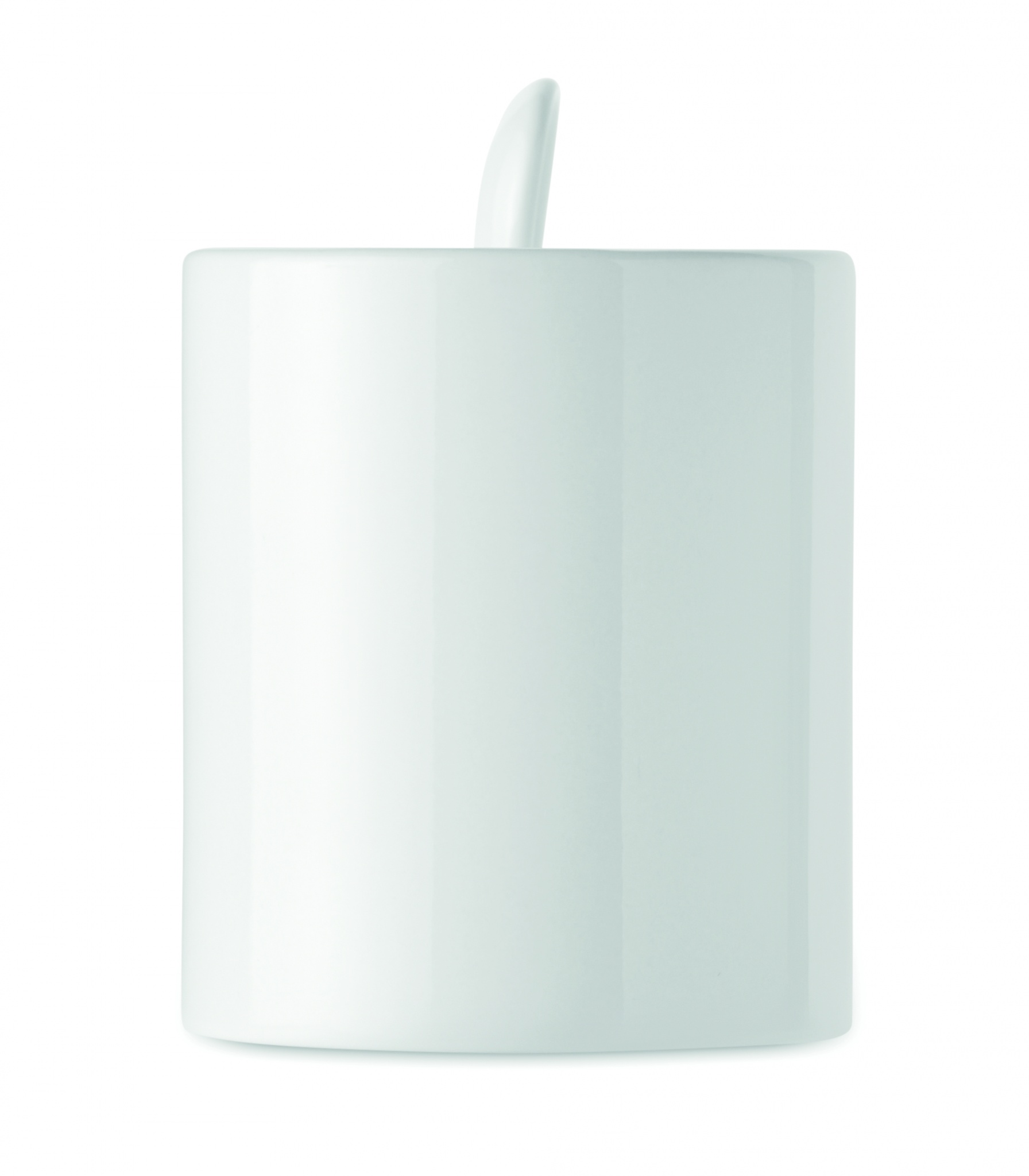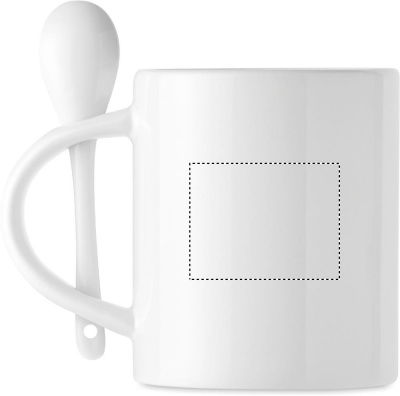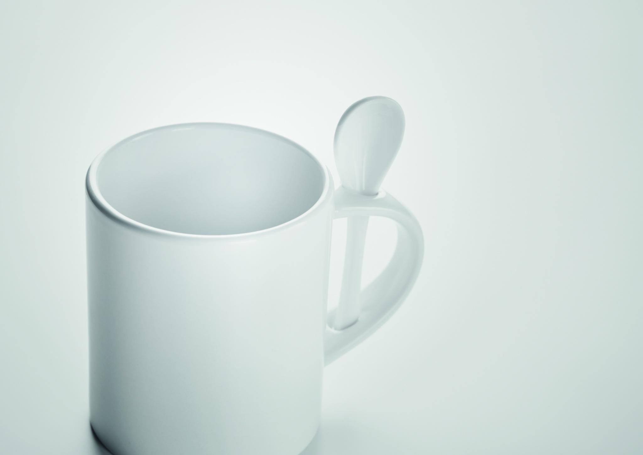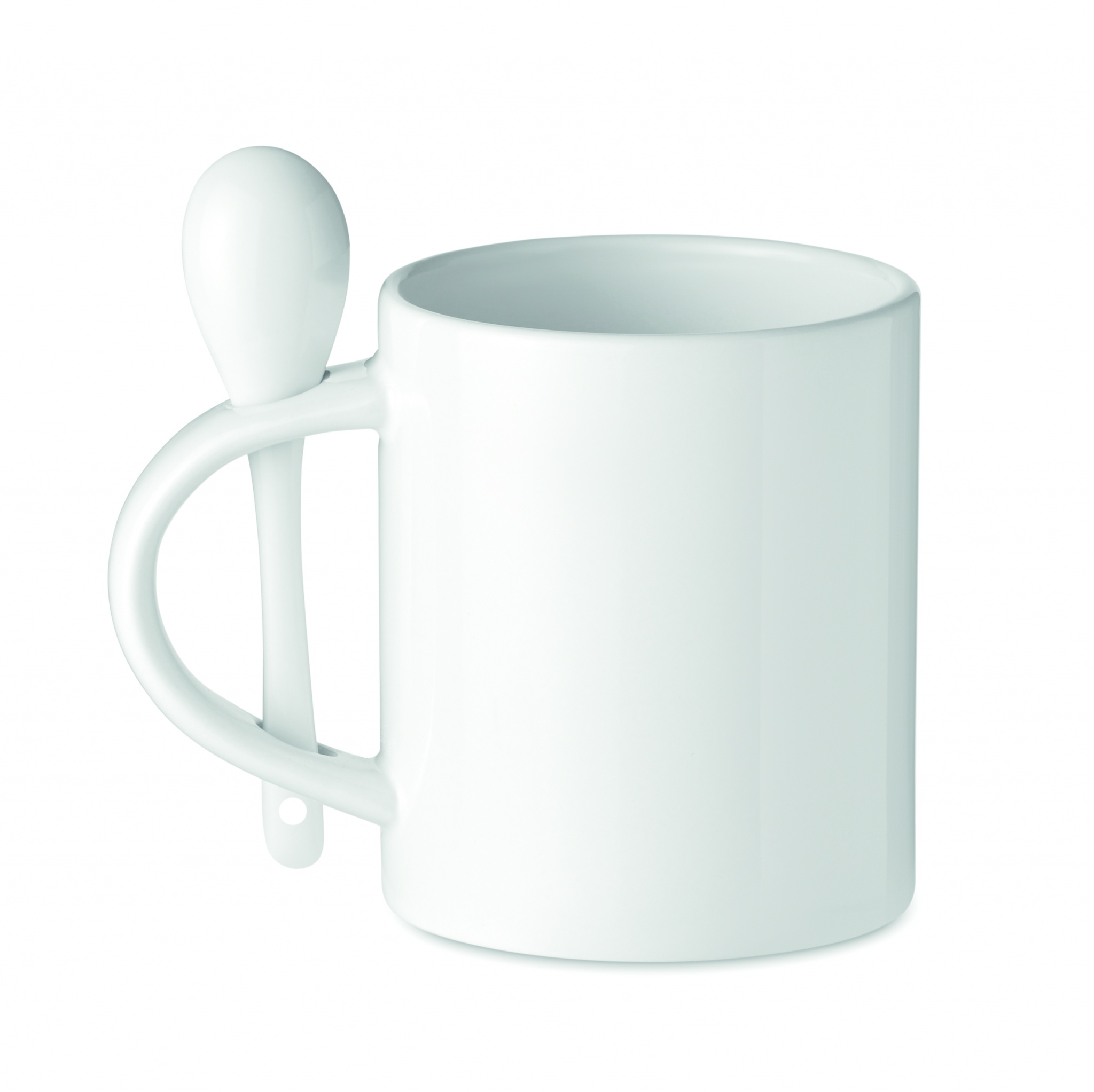 Керамическая кружка и ложка со специальным покрытием для сублимационной печати. Ложка крепится в ручке кружки. Объем: 300 мл.