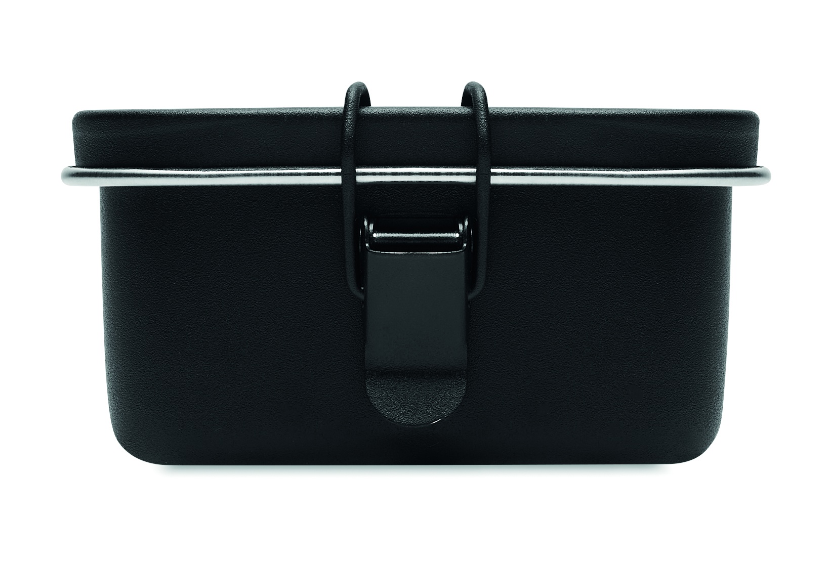 Ланч-бокс из нержавеющей стали с прочными боковыми застежками, обеспечивающими герметичность. Емкость 750 мл.